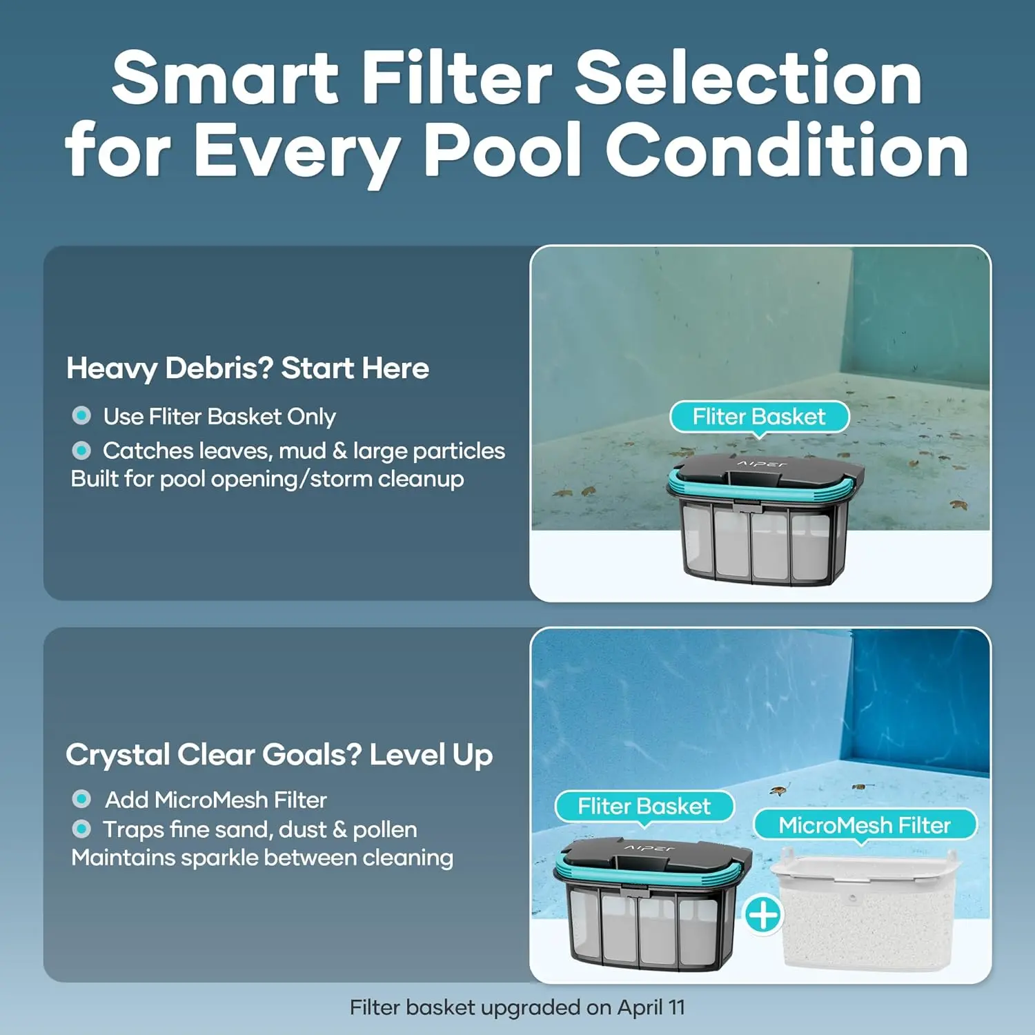 ·Upgrade Multi-Layer Filtration: Scuba X1's upgrade multi-layer filtration system captures debris as small as 3μm. The MicroMesh Ultra-Fine Filter is perfect for day-to-day cleaning, capturing unseen particles for a consistently cleaner pool