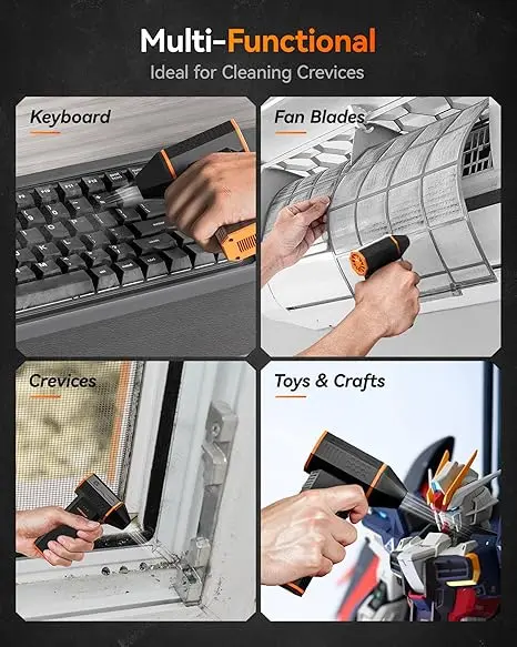 ·Cost-effective & Reusable: Crafted with durable materials and featuring a long-lasting battery , this air duster delivers over 500 uses . More economical than disposable compressed air cans, it provides a cost-effective solution that enhances your cleaning experience.