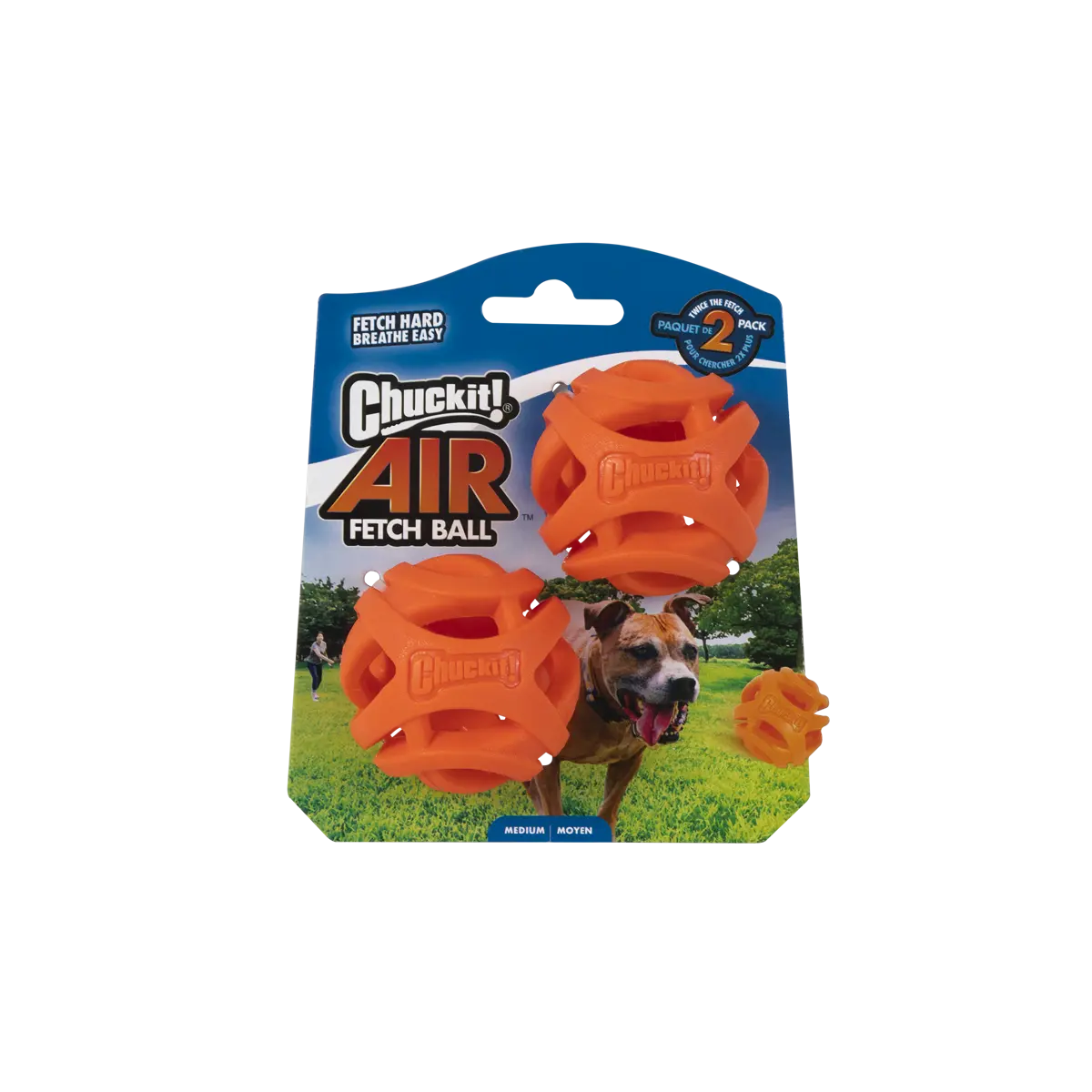 Fetch Hard and Breathe Easy with the Chuckit!® Air™ Fetch Ball! This patented, high-performance ball is designed to allow your dog to run farther and fetch longer during playtime.The hollow, mesh-like design facilitates breathing and airflow into your dog's lungs while running and fetching. Great for playing near a pool or other body of water since it also floats. Made from durable material, the Chuckit! Air Fetch Ball is lightweight and easy to grab. It also helps keep your dog active and healthy by promoting exercise and activity. Great for dogs that may tend to get bored easily. Compatible with all Chuckit! Launchers. Multiple sizes are available for dogs of all breeds and sizes.