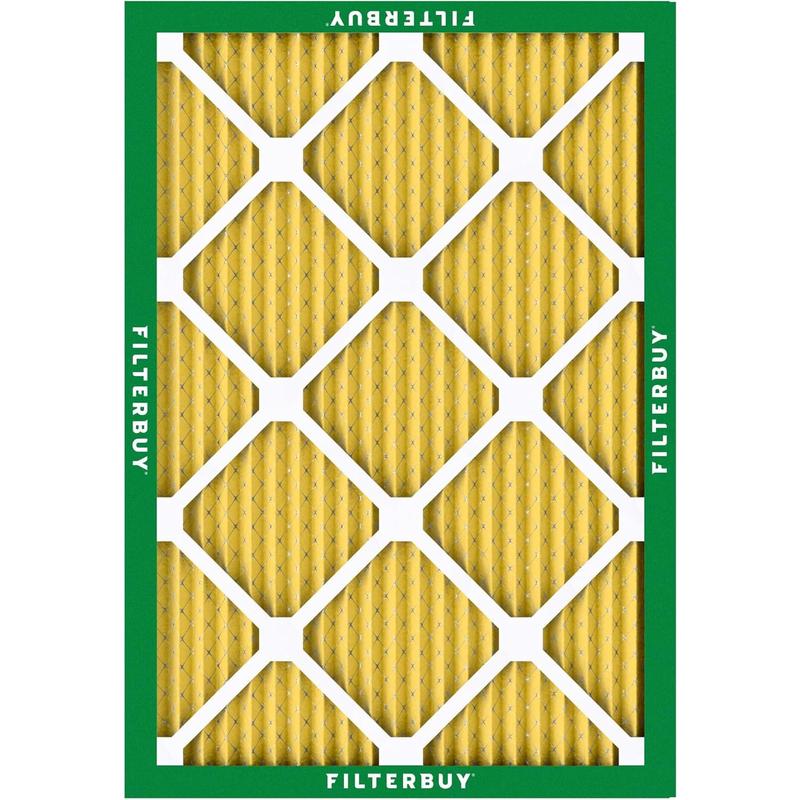 The Filterbuy replacement air filter 16x20x1 (actual size: 15.50" x 19.50" x 0.75") ensures that your furnace, air conditioner, heat pump, or HVAC system is circulating the cleanest air possible to help preserve your budget and healthy lifestyle. MERV 11 synthetic media (comparable with Micro Allergen Defense MPR 1000 - 1200 & FPR 7) is recommended if you have pets or allergies due to its capability to trap 95% of airborne particles, protecting your home or business from smoke, smog, debris, lint, pollen, mold, dander, and other forms of dust without impacting air flow. High quality construction features an electrostatically charged design with 14 pleats per foot that captures more harmful particles and prolongs the products lifespan by three times that of fiberglass models (replace every 90 days for best results). Plus, our industrial grade beverage board frames are paired with dual wire backings that significantly outperform traditional cardboard compositions by improving structural integrity with their ability to endure temperatures up to 200 degrees Fahrenheit and withstand exposure to moisture. Installation is also made simple with the addition of easy-to-understand arrows that help identify the direction of air flow and subsequently the way the filter needs to be placed. To top it off, all our components are 100% manufactured within the United States and designed with recyclable materials, providing an eco-friendly alternative to enhancing your air quality.