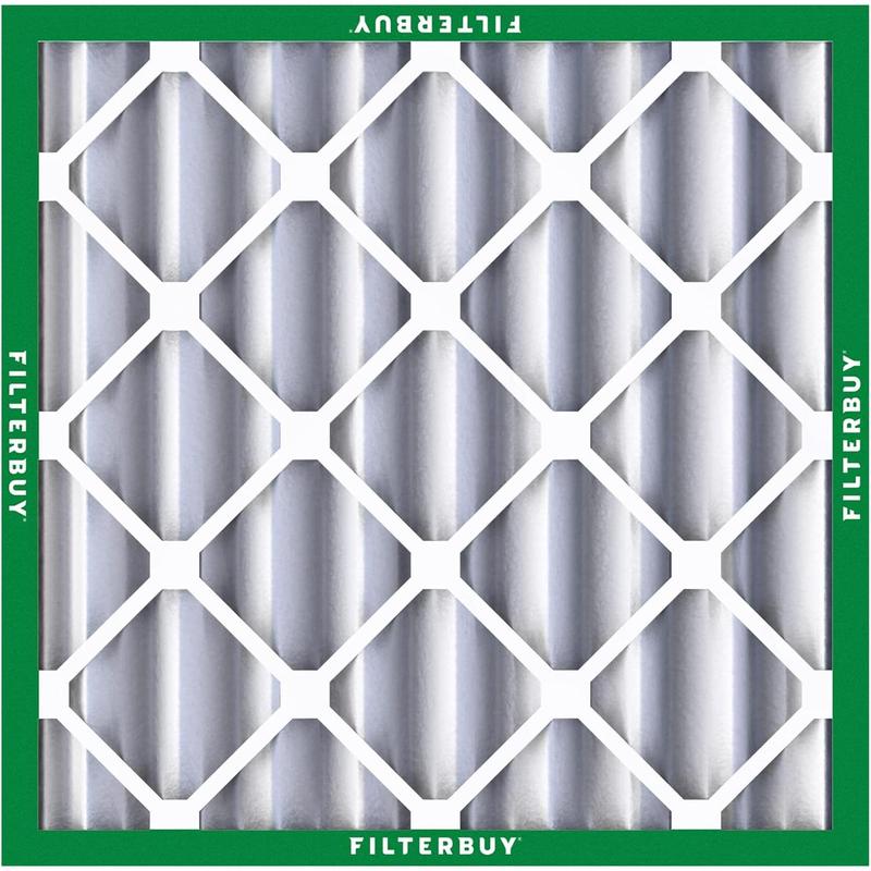 The Filterbuy replacement air filter 20x20x4 (actual size: 19.50" x 19.50" x 3.63") ensures that your furnace, air conditioner, heat pump, or HVAC system is circulating the cleanest air possible to help preserve your budget and healthy lifestyle. MERV 8 synthetic media (comparable with Clean Living Dust Defense MPR 600 & FPR 5) is recommended in most scenarios due to its capability to trap 90% of airborne particles, protecting your home or business from debris, lint, pollen, mold, dander, and other forms of dust without impacting air flow. High quality construction features an electrostatically charged design with 8 pleats per foot that captures more harmful particles and prolongs the products lifespan by three times that of fiberglass models (replace every 90 days for best results). Plus, our industrial grade beverage board frames are paired with dual wire backings that significantly outperform traditional cardboard compositions by improving structural integrity with their ability to endure temperatures up to 200 degrees Fahrenheit and withstand exposure to moisture. Installation is also made simple with the addition of easy-to-understand arrows that help identify the direction of air flow and subsequently the way the filter needs to be placed. To top it off, all our components are 100% manufactured within the United States and designed with recyclable materials, providing an eco-friendly alternative to enhancing your air quality.