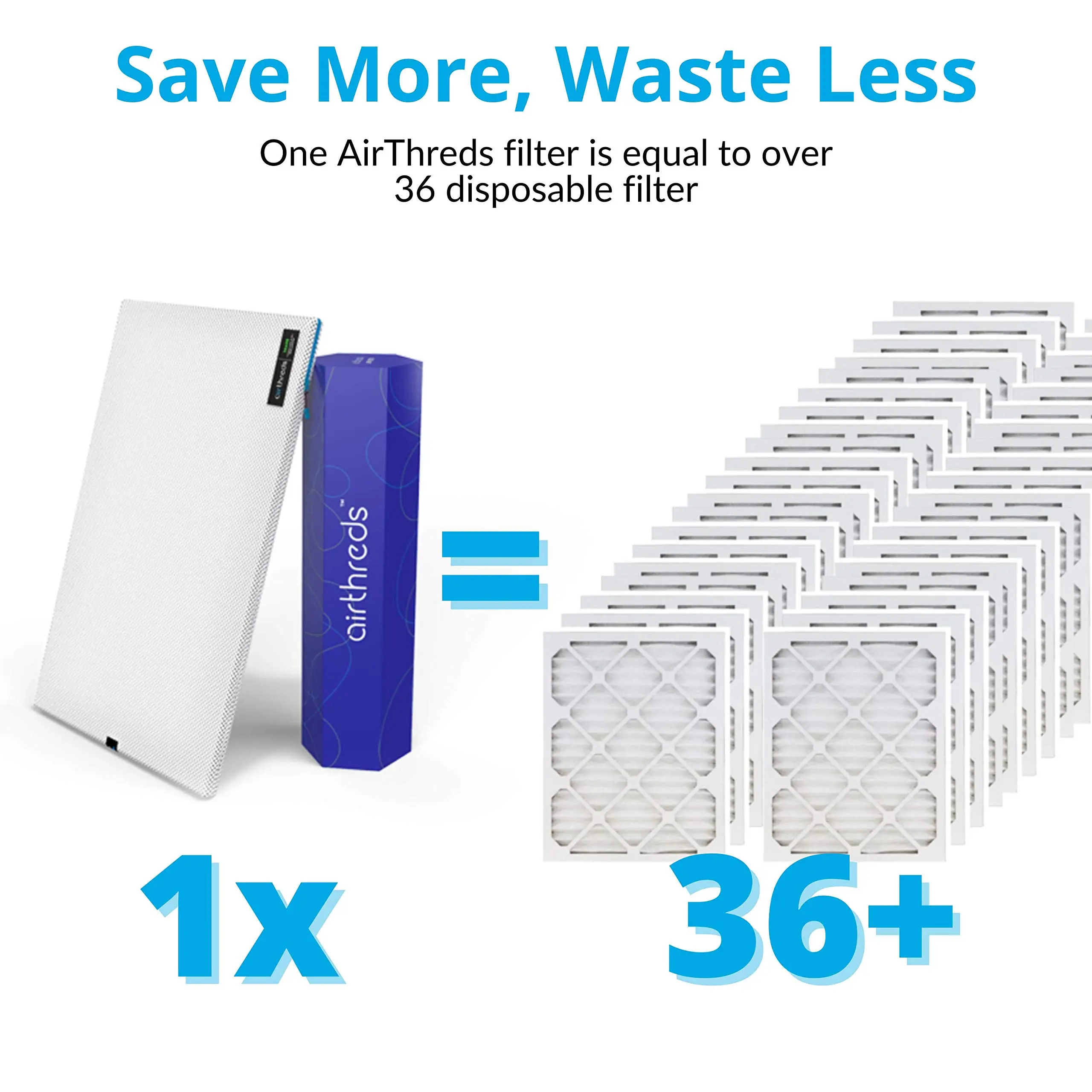 ·Easy Care and Reuse: AirThreds is the world first machine washable and dryer friendly home air filter. Once a month or even more if you want, just toss your filter in the washer, then the dryer, and your filter is like new.