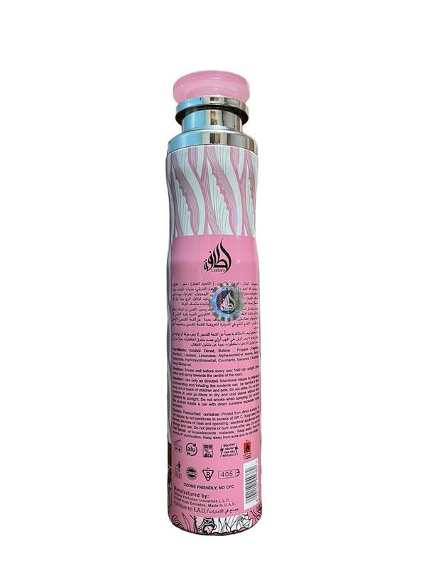 This air freshener, manufactured by Lattafa in the UAE, comes in a pack of one with a volume of 300.0 milliliters. It falls under the Home Fragrance category, perfect for creating a welcoming atmosphere in any room.