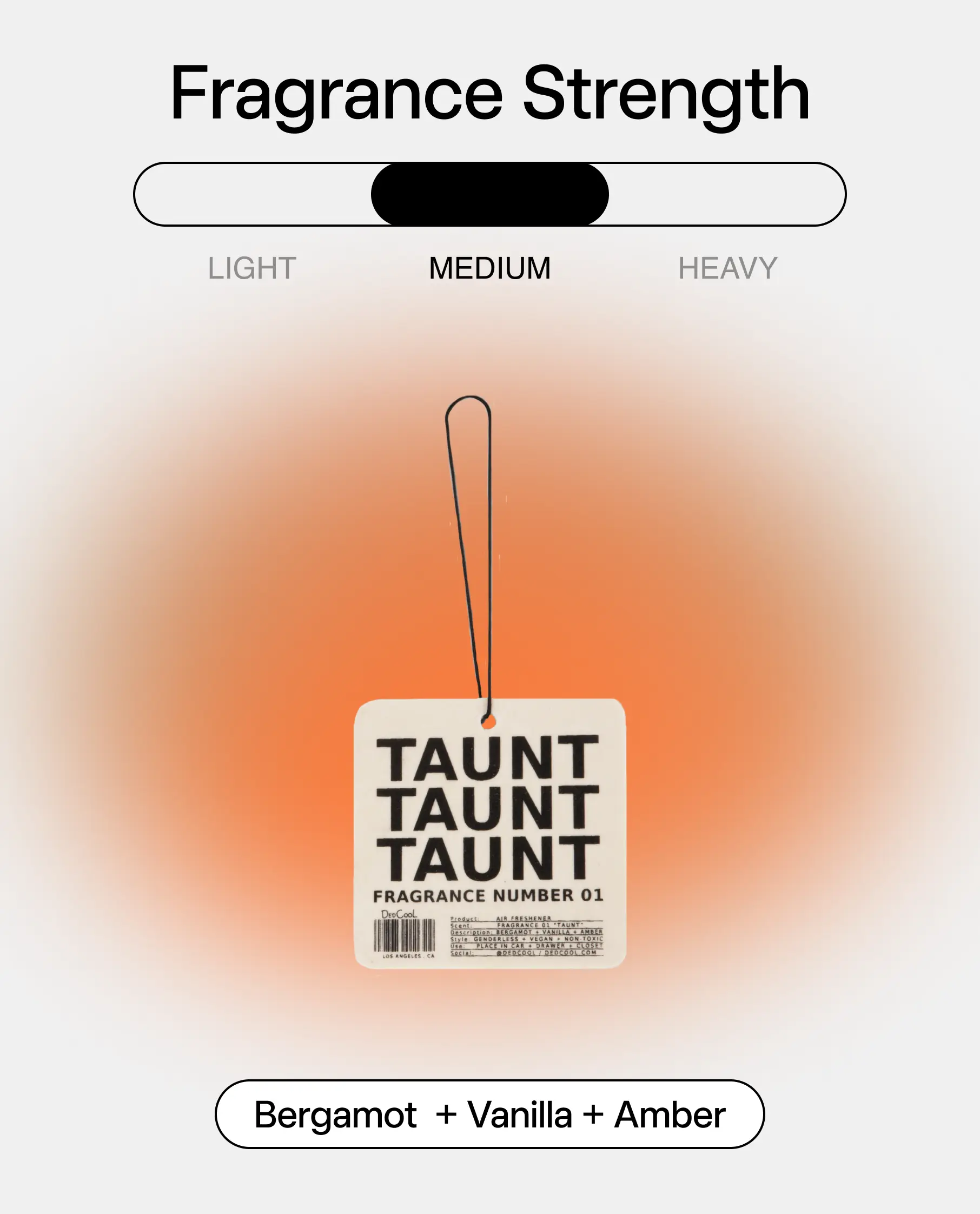 Taunt is my favorite fragrance so I was happy that it comes as an air freshener, but I’m giving it 3 stars because it didn’t last long at all. Looks cool hanging from the rear view mirror though!