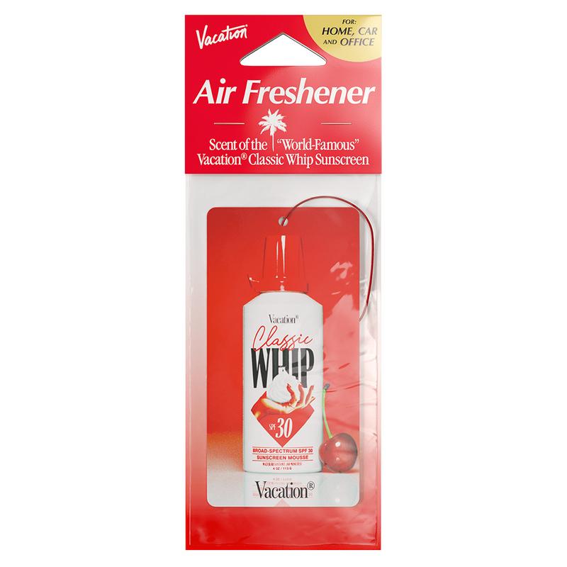 The scent of the iconic Vacation® Classic Whip Sunscreen, conveniently diluted into air-freshener form for your home, car, office or waterbed.