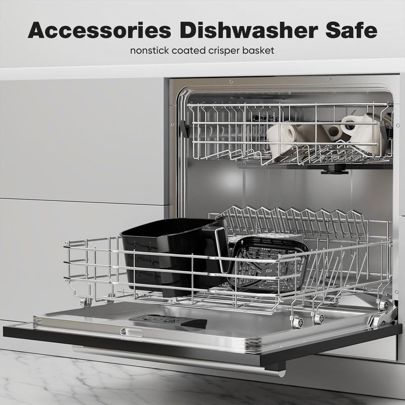 ·Easy to Clean & Dishwasher Safe: Cleaning up has never been easier with Air Fryer. The non-stick basket and accessories are dishwasher safe, making the post- meal cleanup quick and hassle- free. Spend more time enjoying your meals and less time scrubbing.