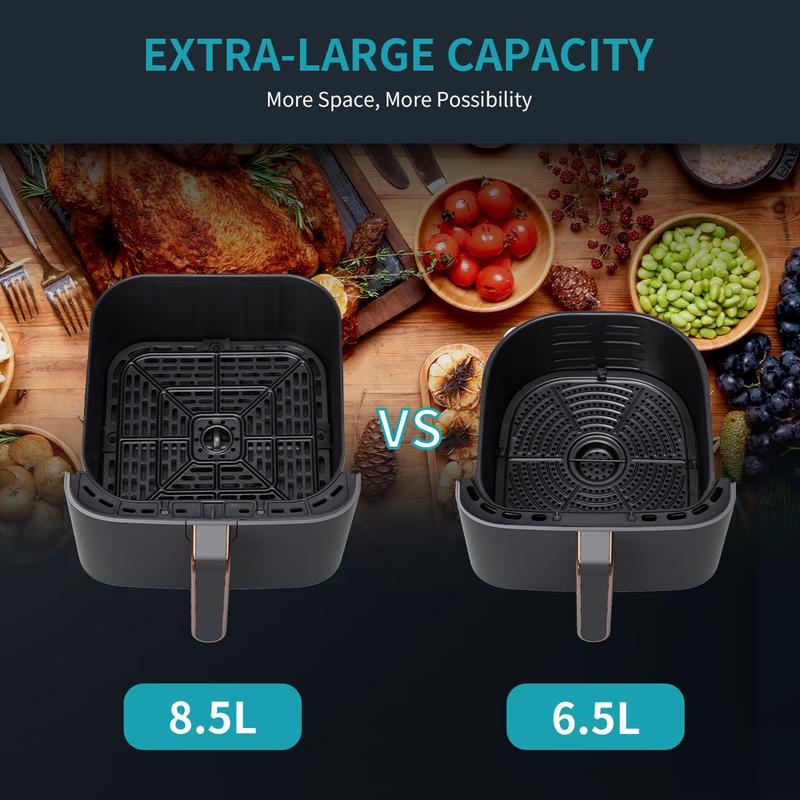 ·Size Does Matter: This 9qt large capacity air fryer is an essential helper for you to cook for your family and friends; it assists you to cook a whole 13-pound chicken for 8 people at once; a free cookbook included with 50 inspiring ideas for the beginner; starting your cooking journey with this amazing large air fryer