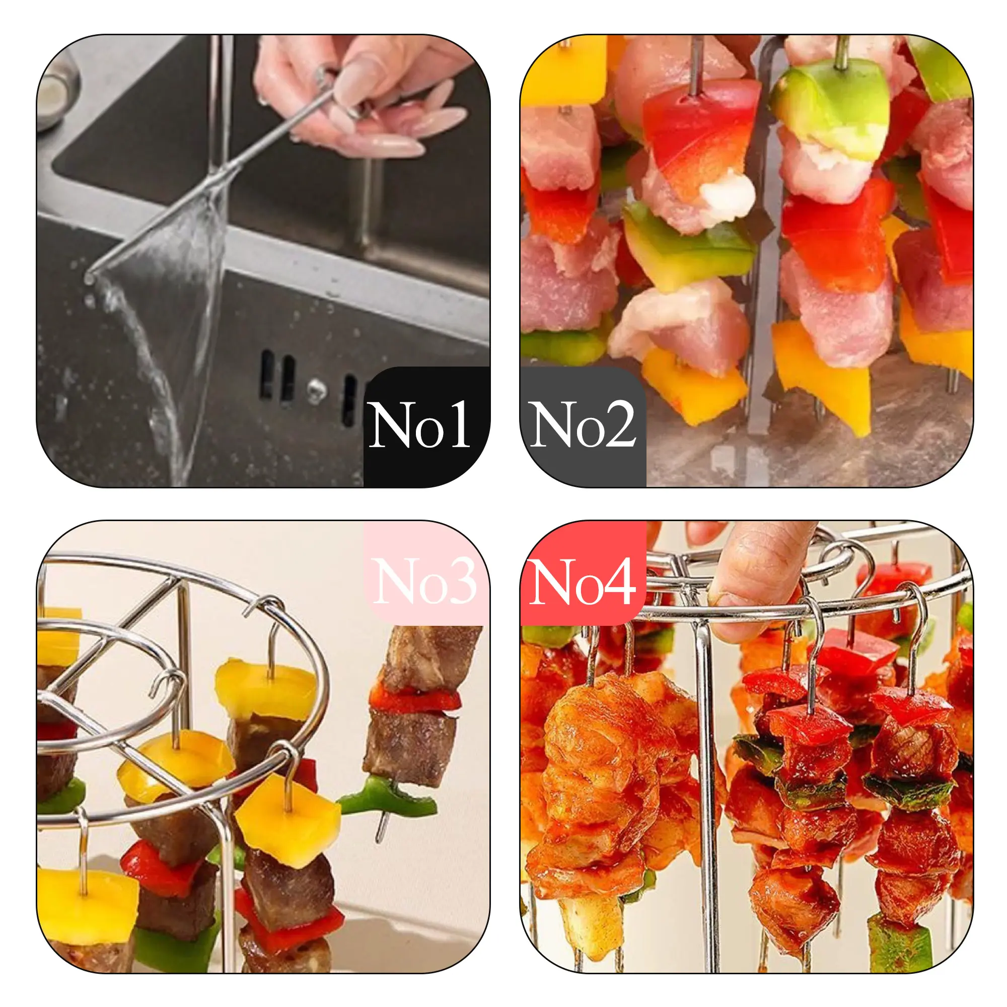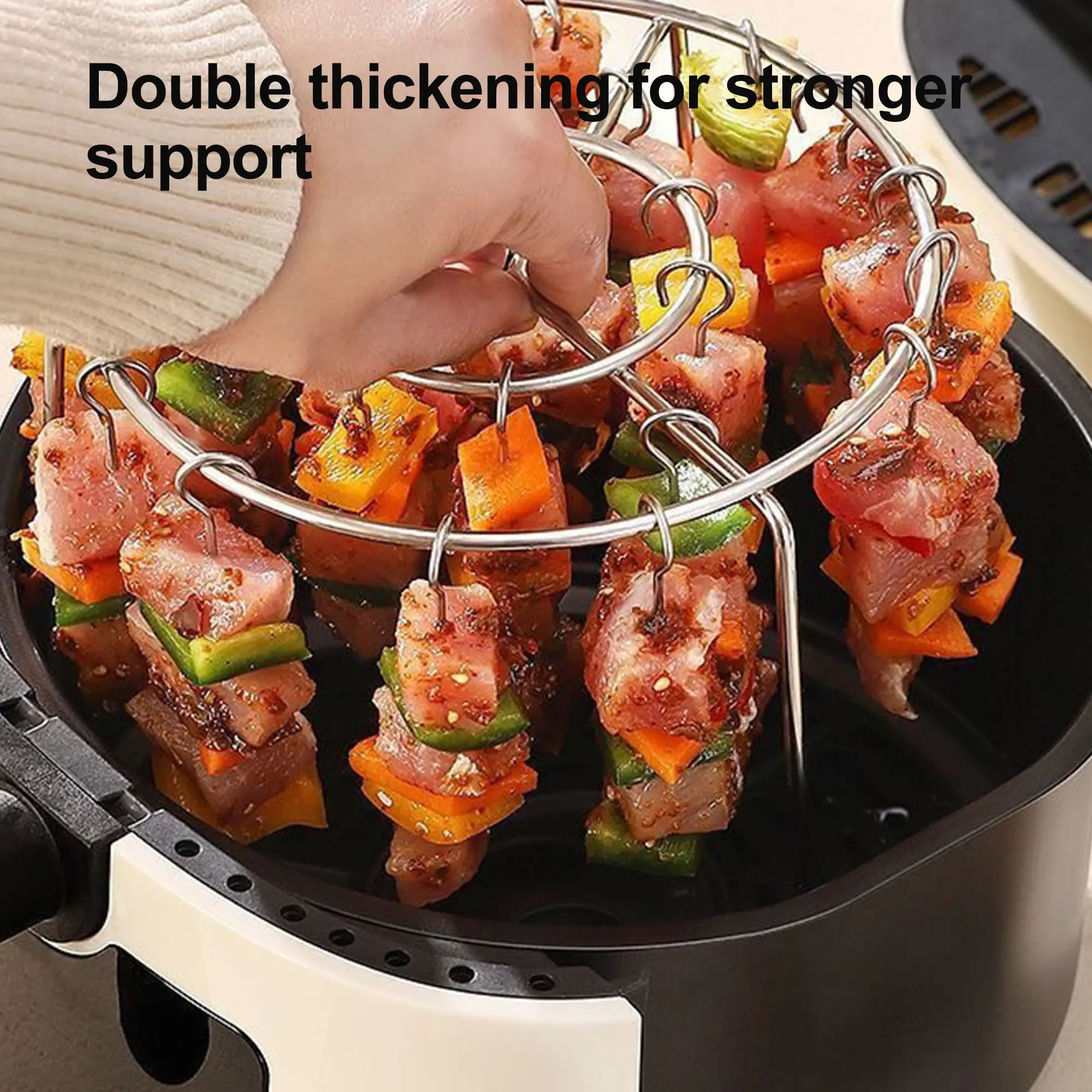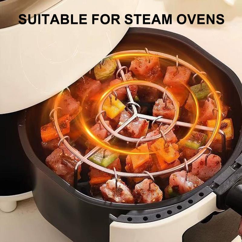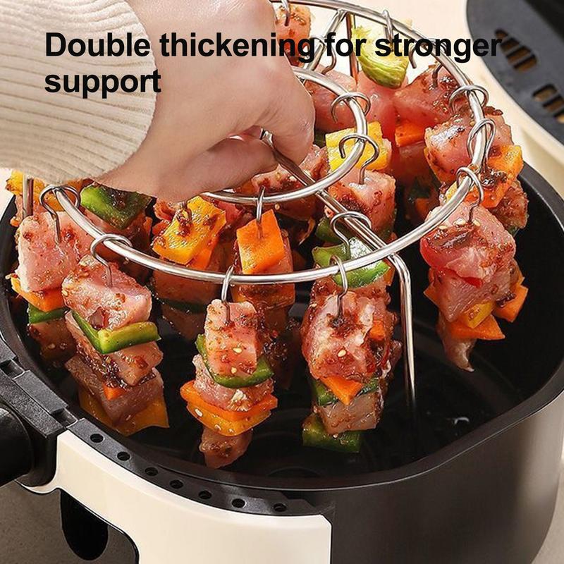 【Easy to Clean】 This air fryer skewer stand surface has been finely polished, smooth and comfortable to the touch, no burrs, safe to use, after use, whether it is a simple water rinse, wipe with a damp cloth, or put it in the dishwasher, it can easily be restored to clean as new