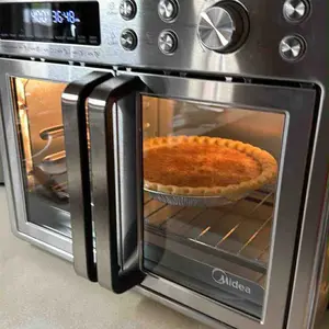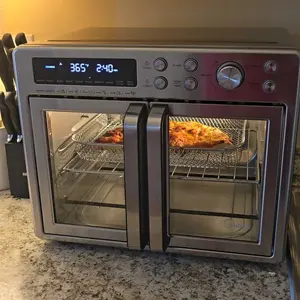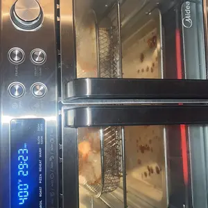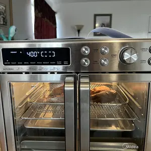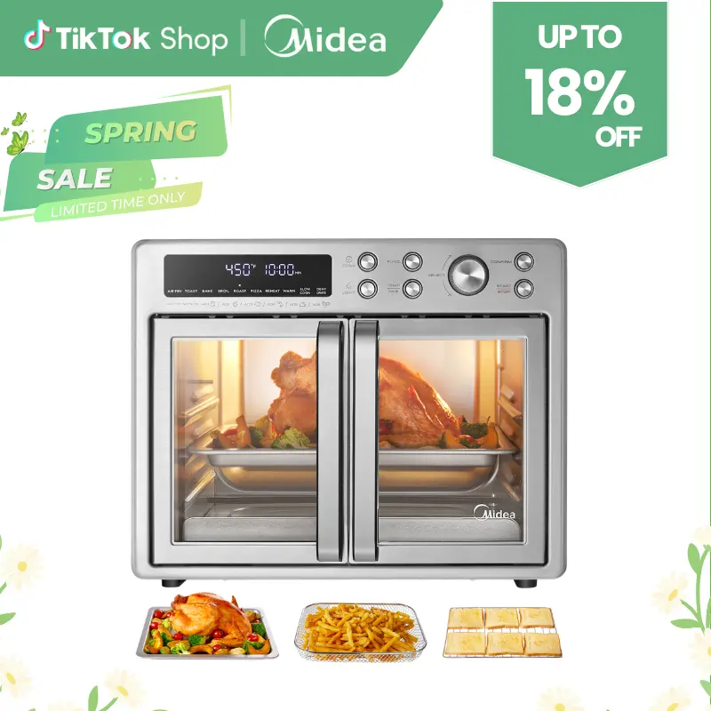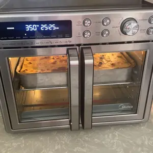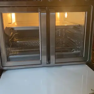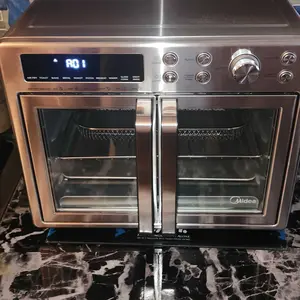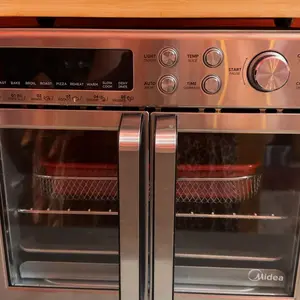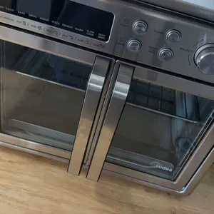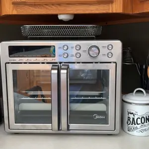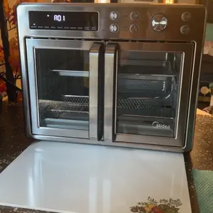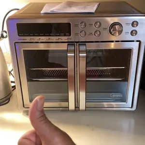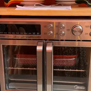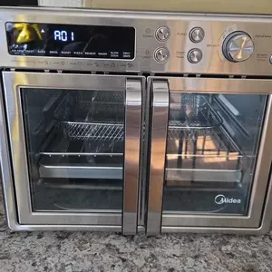 This Midea airfryer is a must buy ! It's beautiful big and stainless steel. It cooks so fast ! Best of all it's so quiet while cooking. The French doors are so esthetically pleasing and you can turn the light off or on while cooking !