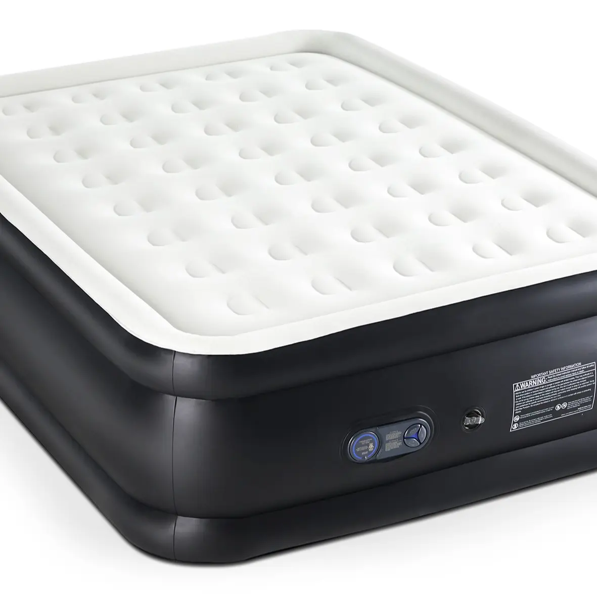 ·BUILT-IN HIGH CAPACITY PUMP: The air bed can be inflated/deflated in minutes at the push of a button, thanks to the built-in 110V high power electric air pump. Inflating time for different sizes of blowup air mattress: 22in queen size - 240s; 18in queen size - 200s; 16in queen size - 150s; 18in twin size - 130s; 16in twin size - 110s.