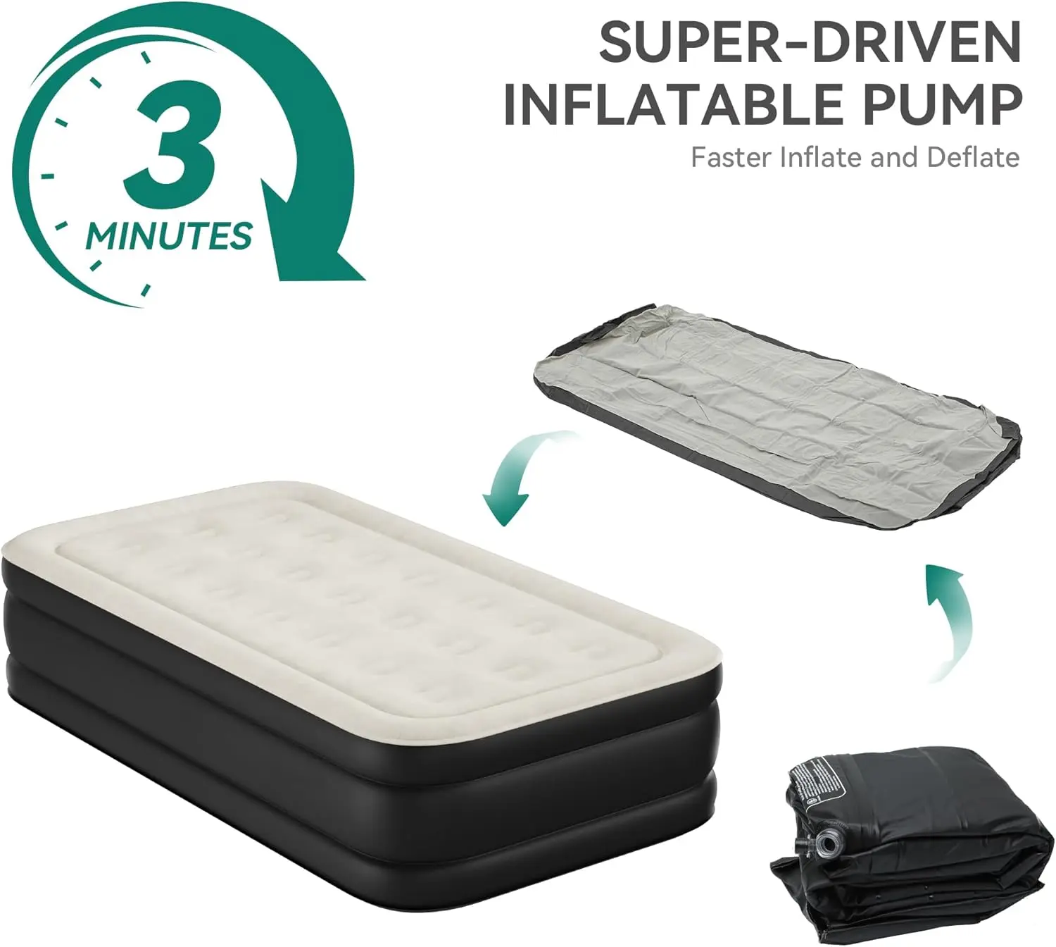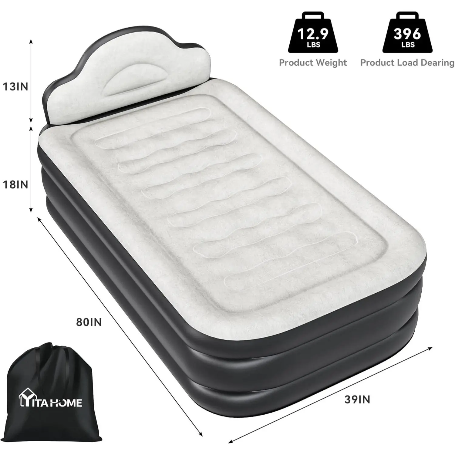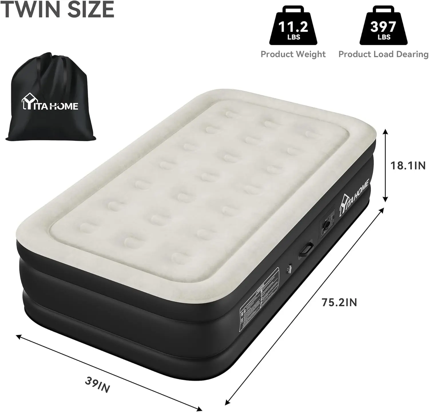 Easy Inflation and Repair: This twin bed mattress boasts generous dimensions of 75.2'' x 39.0'' x 18.1''(Twin Size) when inflated; Premium flocking and high-strength PVC material combine to offer exceptional comfort and durability.