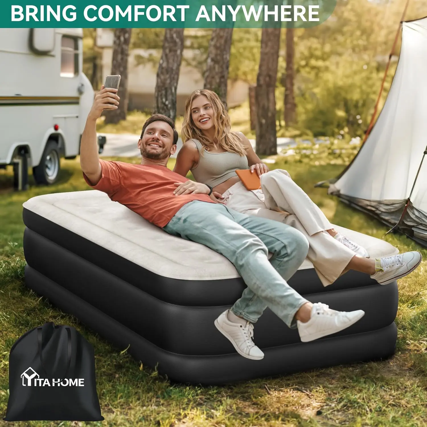 Convenient Details: The air mattress with built-in pump features an extra external inflation valve for convenient inflation outdoors; Also includes a carry bag for easy portability, making it perfect for outdoor activities and overnight stays with your family and friends.