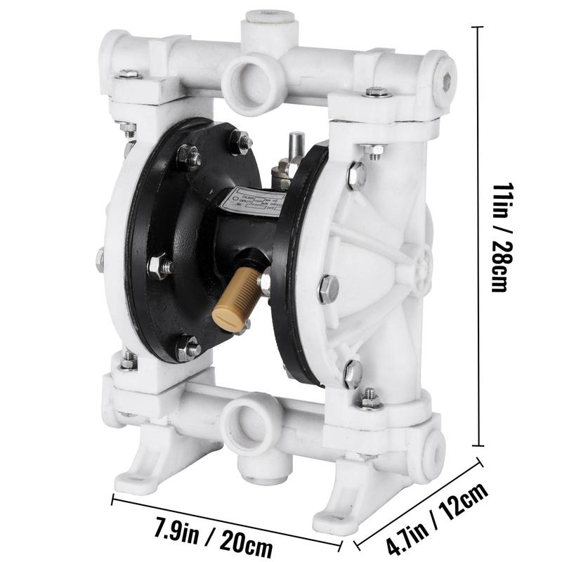 • Premium Double PTFE Diaphragms: Our air-operated double diaphragm pump adopts PTFE diaphragms, durable, corrosion-proof, and long-lasting. Max. Temperature: 150 ℉/66 ℃; Max. Pressure: 80 psi; Max. Flow Rate:2.5 GPM; Max Head Lift:226.4 ft/69 m.