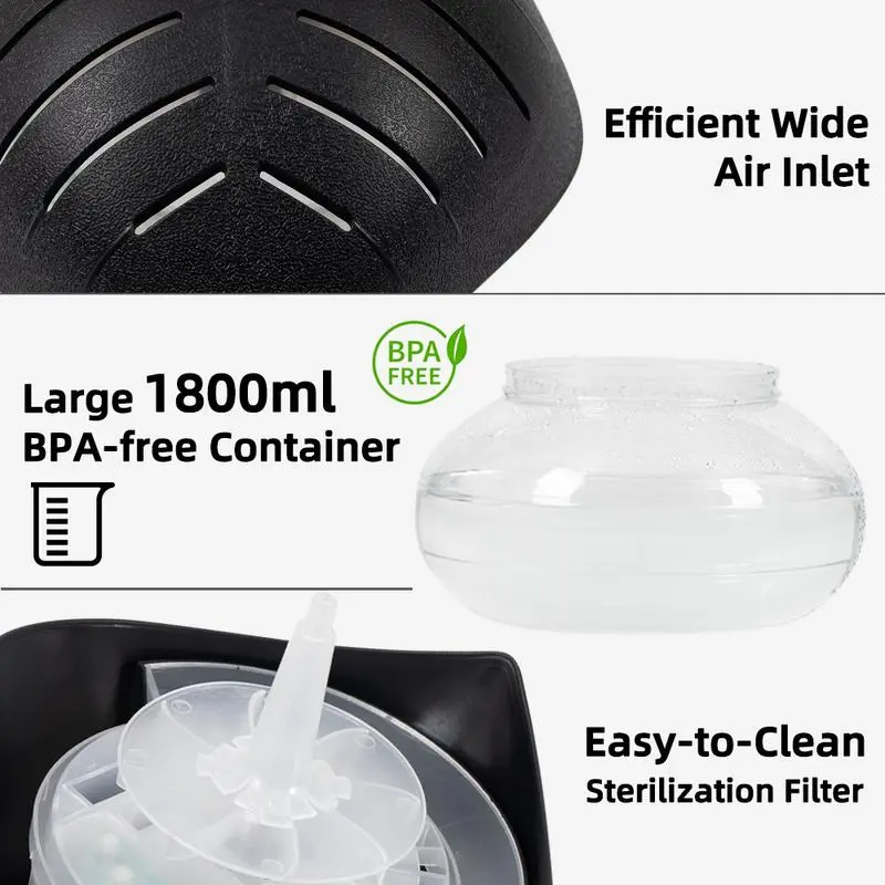 ·Easy to Clean: Drain the water from the bowl, wash with detergent and water, then rinse. Dry the bowl before use. It is recommended to clean the cone at least once a month. Hold the rotating fan and turn the cone counterclockwise to remove it. After cleaning the cone, turn it clockwise back into place.