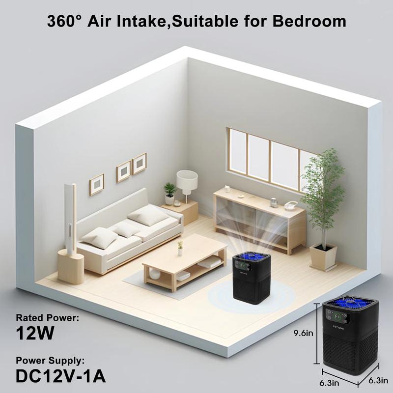 ·SMALL BUT POWERFUL: With a compact size of 7.28 × 7.28 × 11.14 inches and weighing only 2.76 lbs, this sleek purifier fits easily into bedrooms, dorm rooms, nurseries, or offices—covering up to 215 sq.ft with 360° air intake for powerful performance.