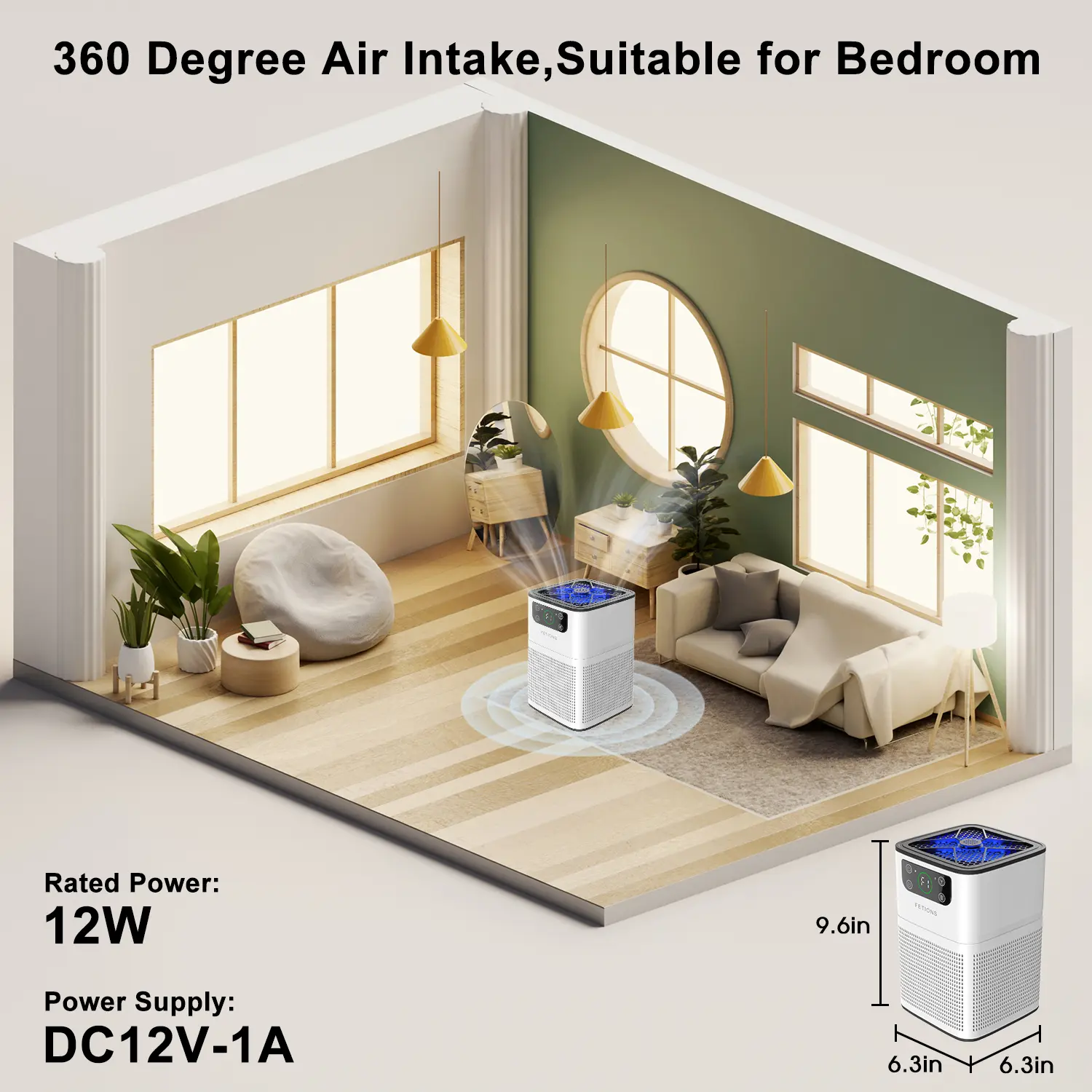·SMALL BUT POWERFUL: Small size and modern design, making it easy to fit in any small space like bedroom, dorm room, nurseries, office that coverage up to 215 sq.ft, 360° air intake powerful enough.
