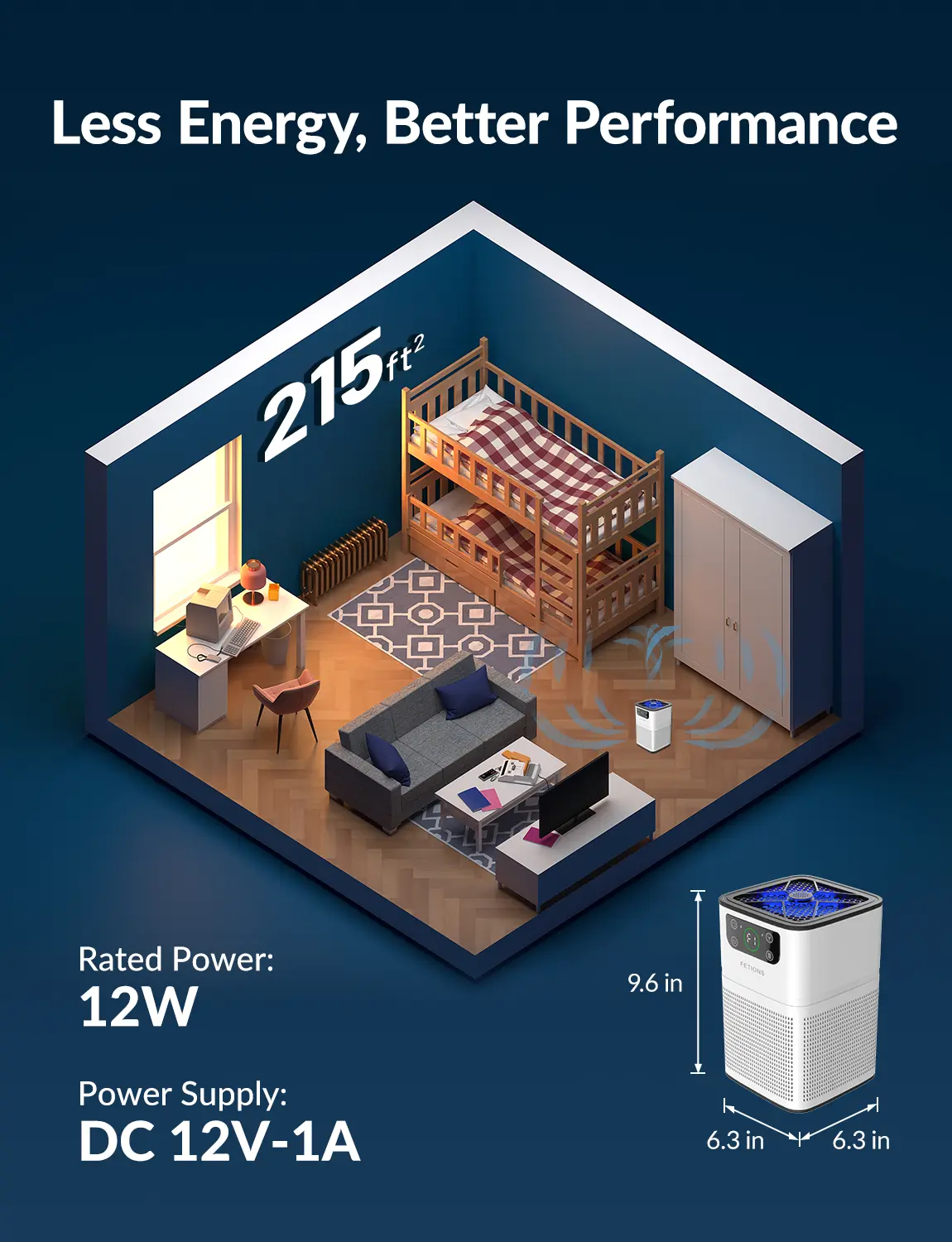 ·Size & Weight: 7.28 × 7.28 × 11.14 inches, weighing 2.76 lbs. Fits easily into bedrooms, dorm rooms, nurseries, or offices. Covers up to 215 sq.ft with 360° air intake. 🏠