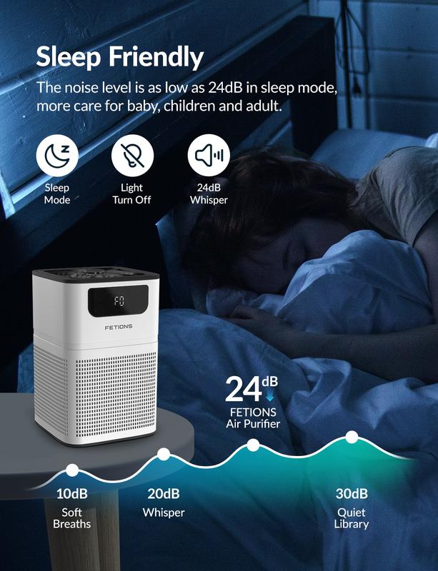 ·3-Stage Filtration: Pre-filter, H13 true HEPA filter, and high-efficiency activated carbon filter capture dust, pollen, and pet hair as small as 0.3 microns. Ideal for pet owners, babies, children, and seniors. 🐾👶