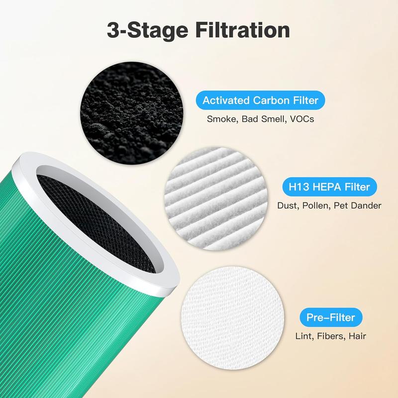 ·H13 True HEPA Filter: Adopt True HEPA Filter with H13 grade which meets the High-Efficiency Particulate Air (HEPA) standard. It filters pet dander, dust and pollen, ect.