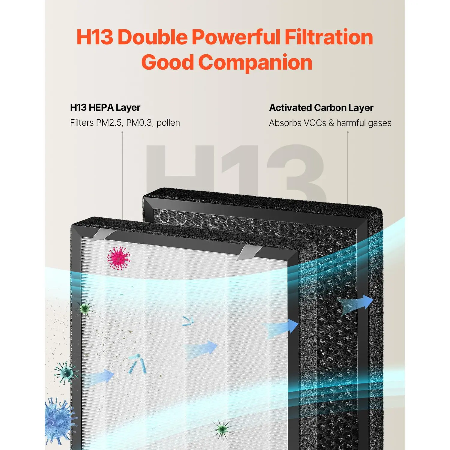 • Replacement Filter for Home Air Purifiers: The H13-grade filter effectively captures particles between 0.1–0.3 microns, removing 99.97% of dust, pollen, and allergens. It’s particularly suitable for air-sensitive individuals, such as the elderly, infants, and pet owners, ensuring a clean and fresh breathing experience at home.