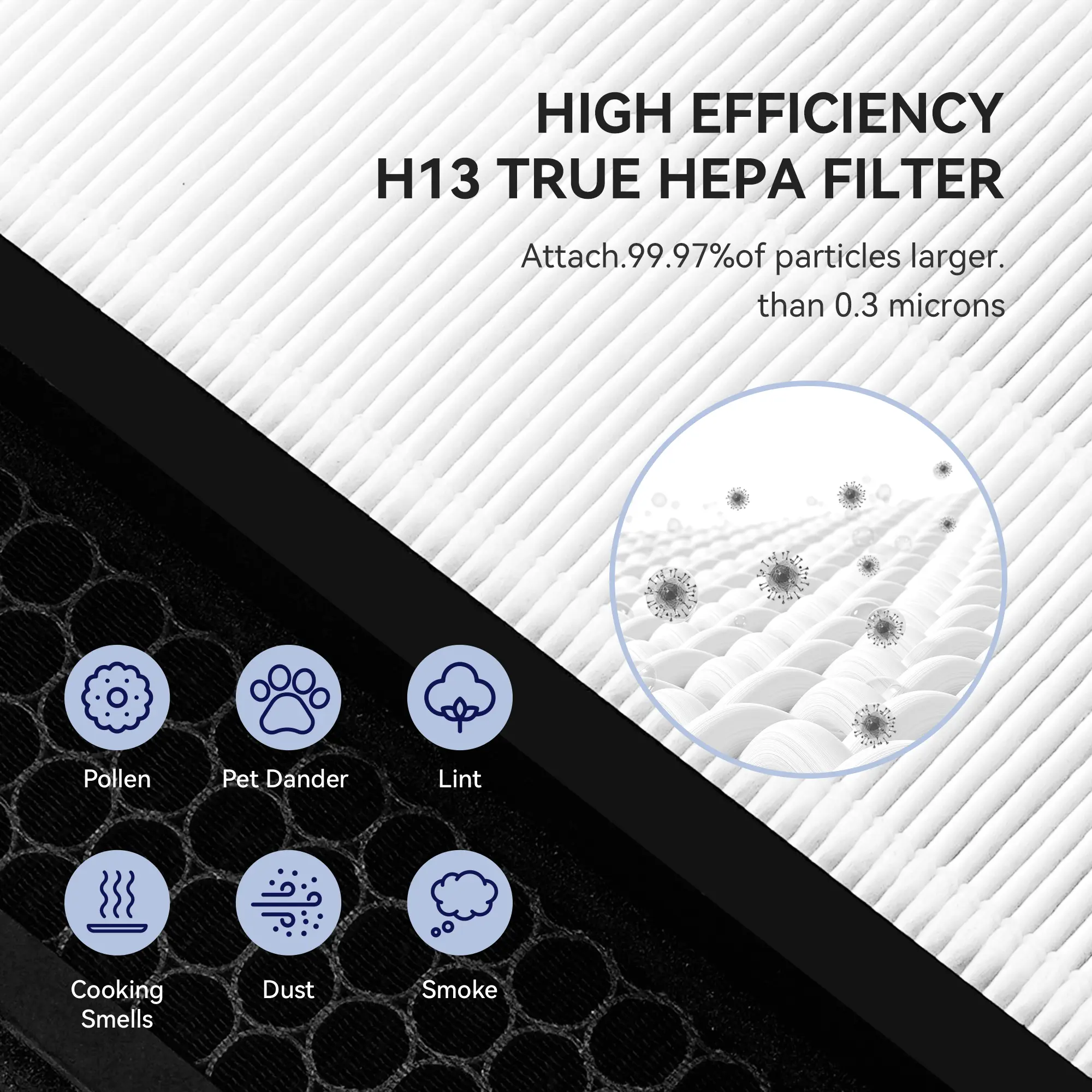 ·True HEPA air purifier filter: H13 true HEPA air purifier filter replacement for HY4866 air purifier adopts H13 grade true HEPA filter and high-efficiency honeycomb activated carbon filter, which can capture 99.97% of airborne particles as small as 0.3 microns and automatically improve air quality.