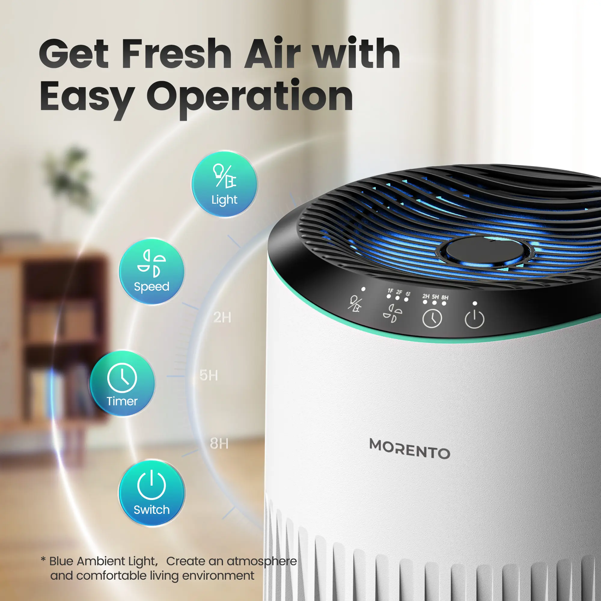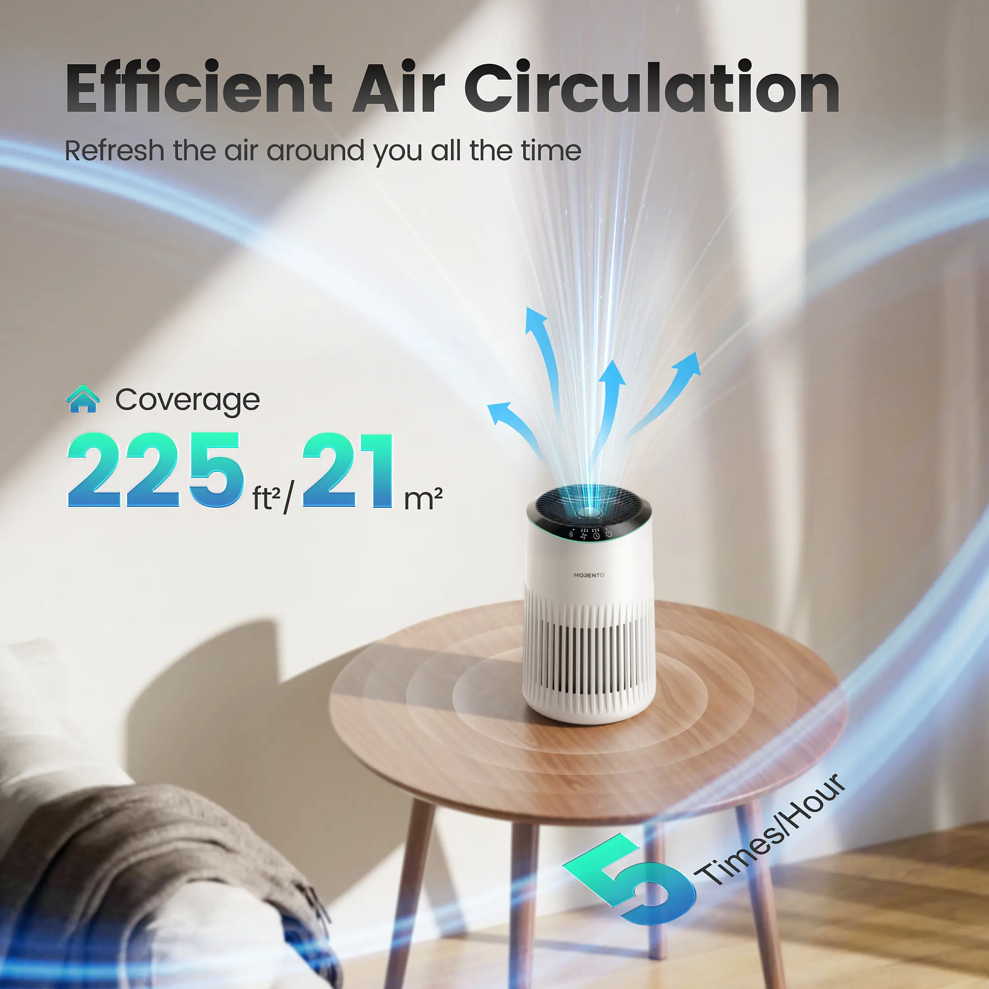 ·Proven Performance for Your Peace of Mind: The MORENTO MR2566 air purifier has been rigorously tested and certified by an independent 3rd testing agency. It's designed to effectively absorb a wide range of air particles, ensuring your breathing space is as clean as can be. Simply switch on this high-efficiency unit and immerse yourself in a constant stream of fresh, comfortable air
