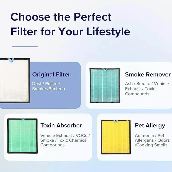 ·UPGRADED HEPA SMART TECHNOLOGY: Our HEPA Filter is safer than medical surgical mask materials and can achieve a better purification effect than traditional general HEPA. the HEPA filter of the 3-in-1 filter removes at least 99.97% of dust, pollen, and any airborne particles with a size of 0.3 microns (µm)