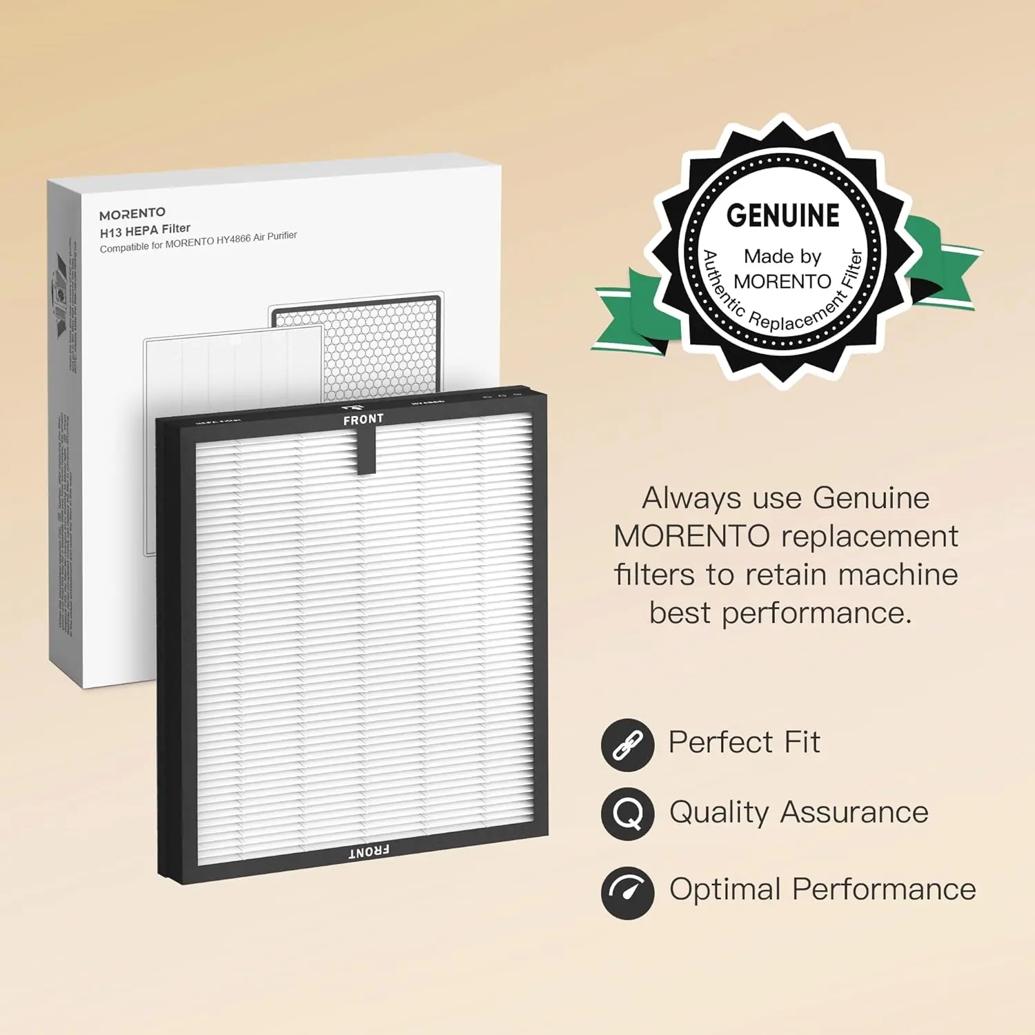 ·Genuine Replacement Filter for HY4866 Air Purifier: Genuine MORENTO air purifier replacement filters guarantee certified fit and maximum filtration. Off-brand filters frequently fail HEPA testing standards, fit incorrectly, reduce efficacy, and may cause damage to your MORENTO air purifier.Your purifier will only be powerful and effective when paired with Genuine filter.