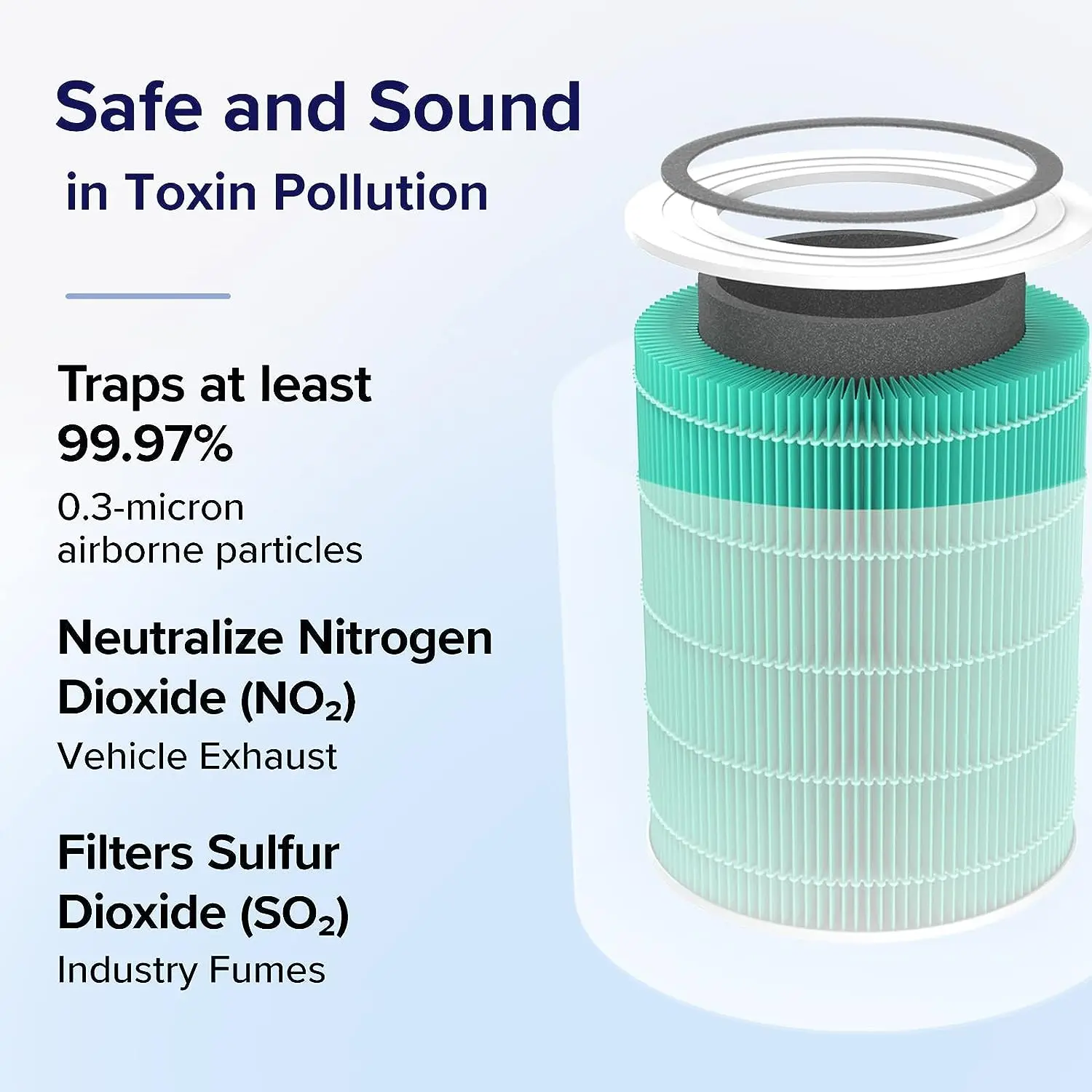 𝟑-𝐒𝐓𝐀𝐆𝐄 𝐅𝐈𝐋𝐓𝐑𝐀𝐓𝐈𝐎𝐍: Three stages of filtration trap a wide variety of airborne contaminants, such as vehicle exhaust, smoke, and toxic compounds