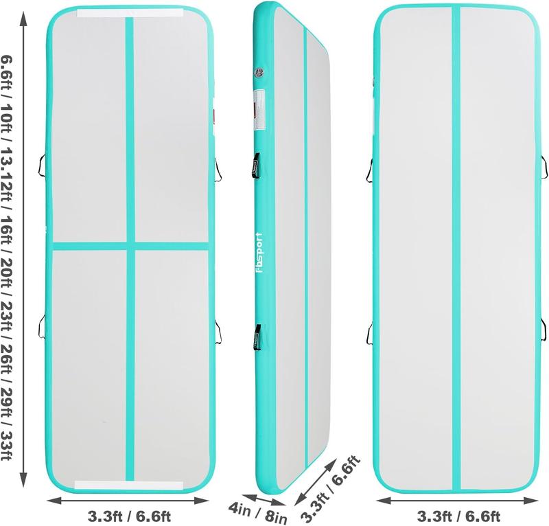Professional Inflatable Mats for Gymnastics- Sizes: 26ft, 33ft, 40ft- Material: 500D Filament Grade and high-quality PVC tarpaulin- Durability: Reinforced seams for better air-tightness and durability- Sizes: Large for group training or professional gymnastics, small for home entertainment or daily training