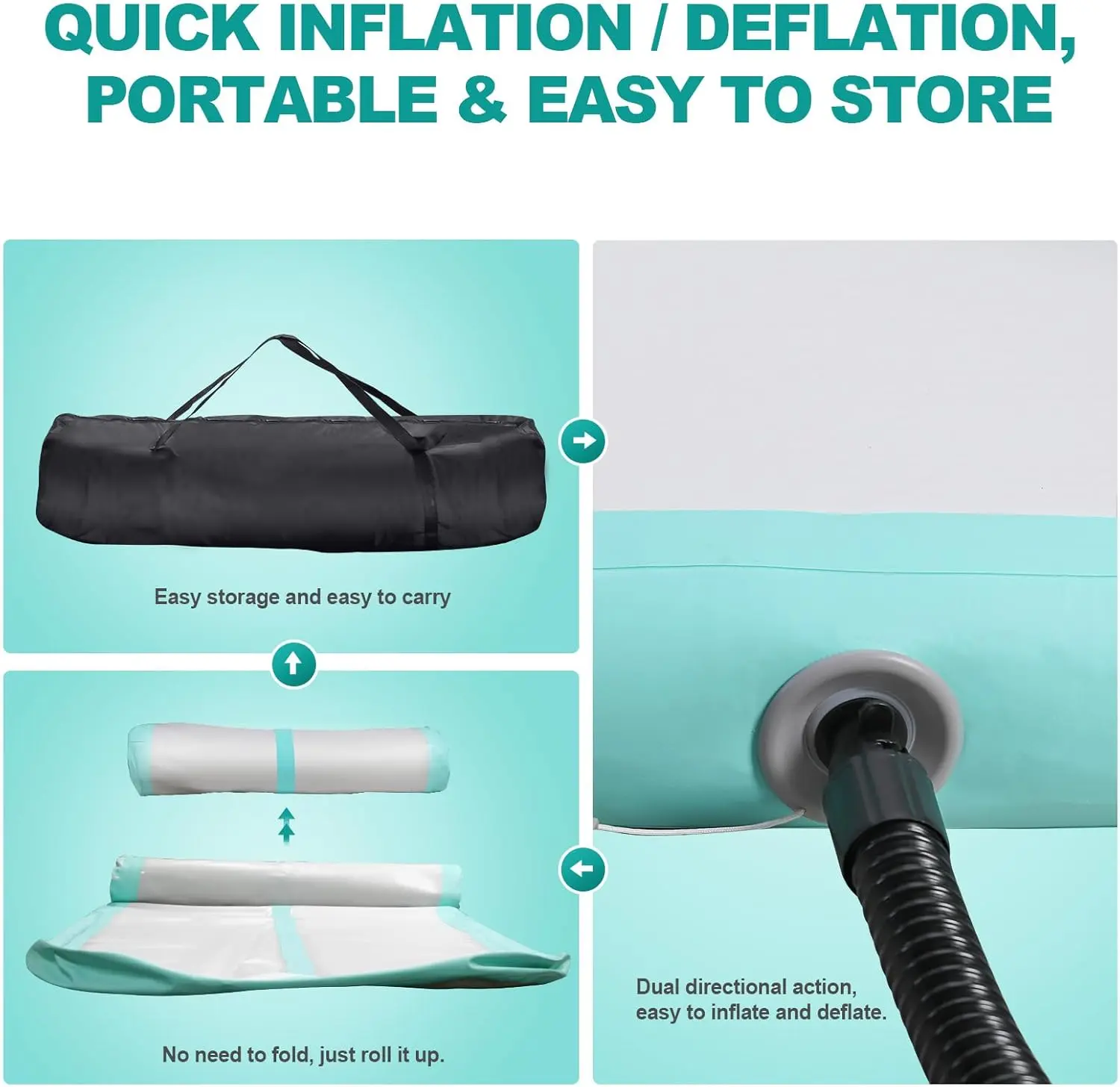 Fast Inflation- Electric Air Pump: Included for quick inflation or deflation- Time: Less than 1 minute for inflation or deflation- Noise: No noise during training- Pressure: Maintains pressure for days