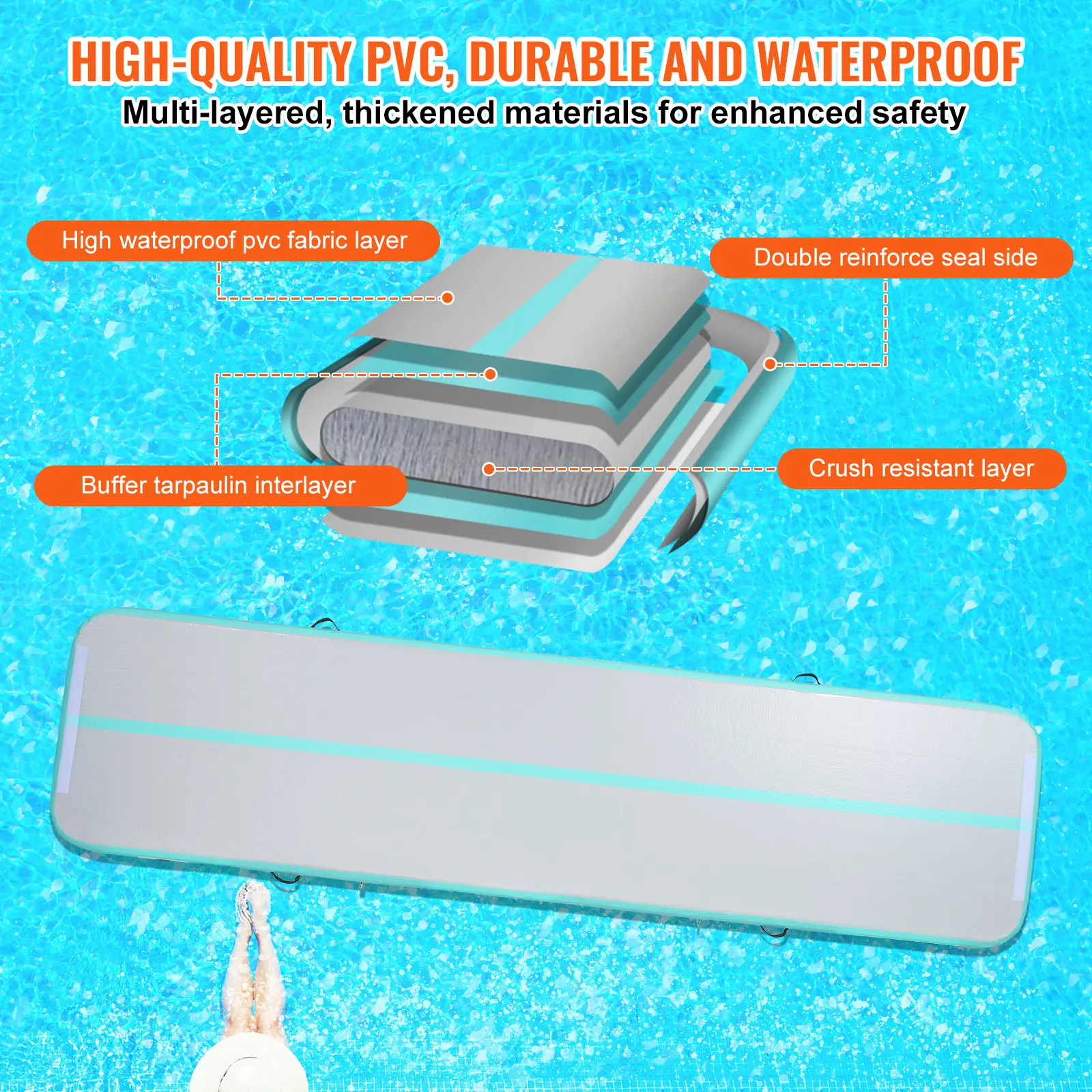 • Variety of Sizes and Colors: Offering air tumbling mats in lengths of 10 ft, 13 ft, 16 ft, and 20 ft to suit your specific needs. Available in multiple colors to add vibrancy to your training and lifestyle. The mat is versatile, suitable for tumbling, gymnastics, yoga, artistic activities, and can also be used on beaches, swimming pools, backyards, or lawns – just avoid sharp objects.