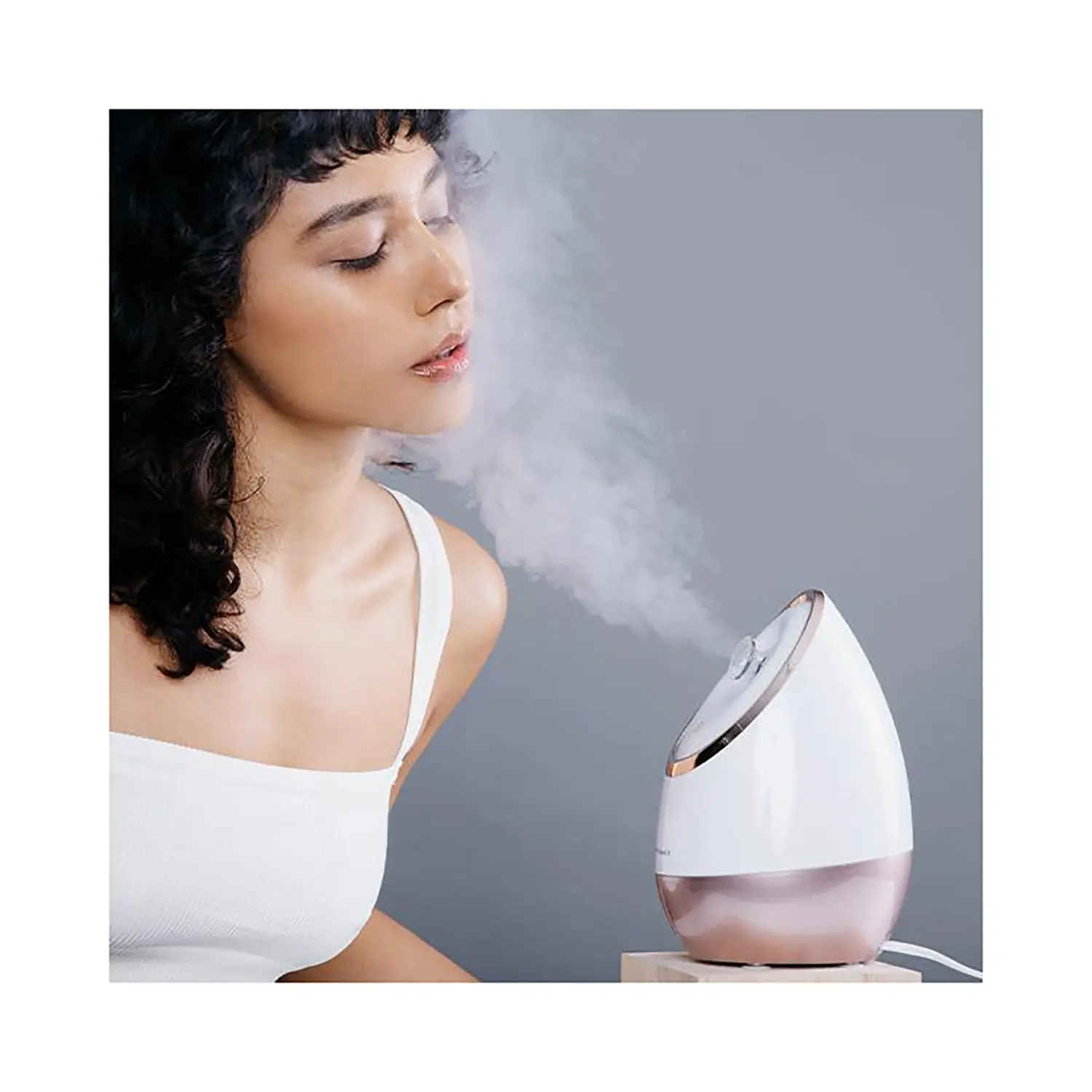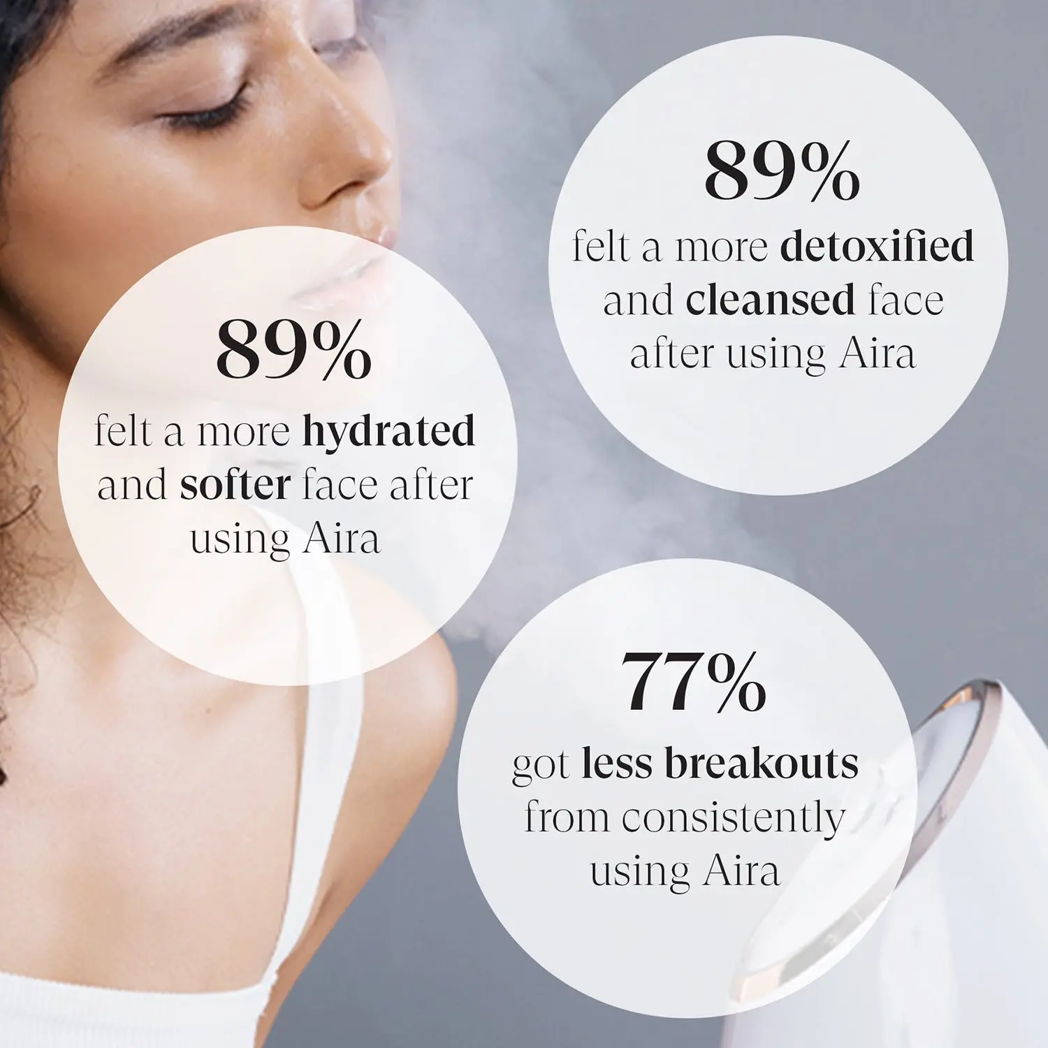 Ideal for all skin types, Aira includes a 85ml water tank. Use it with essential oils for a therapeutic and relaxing experience. This personal steamer system is perfect for home use. Detoxify and cleanse your skin effortlessly, ensuring a healthier, more radiant complexion.