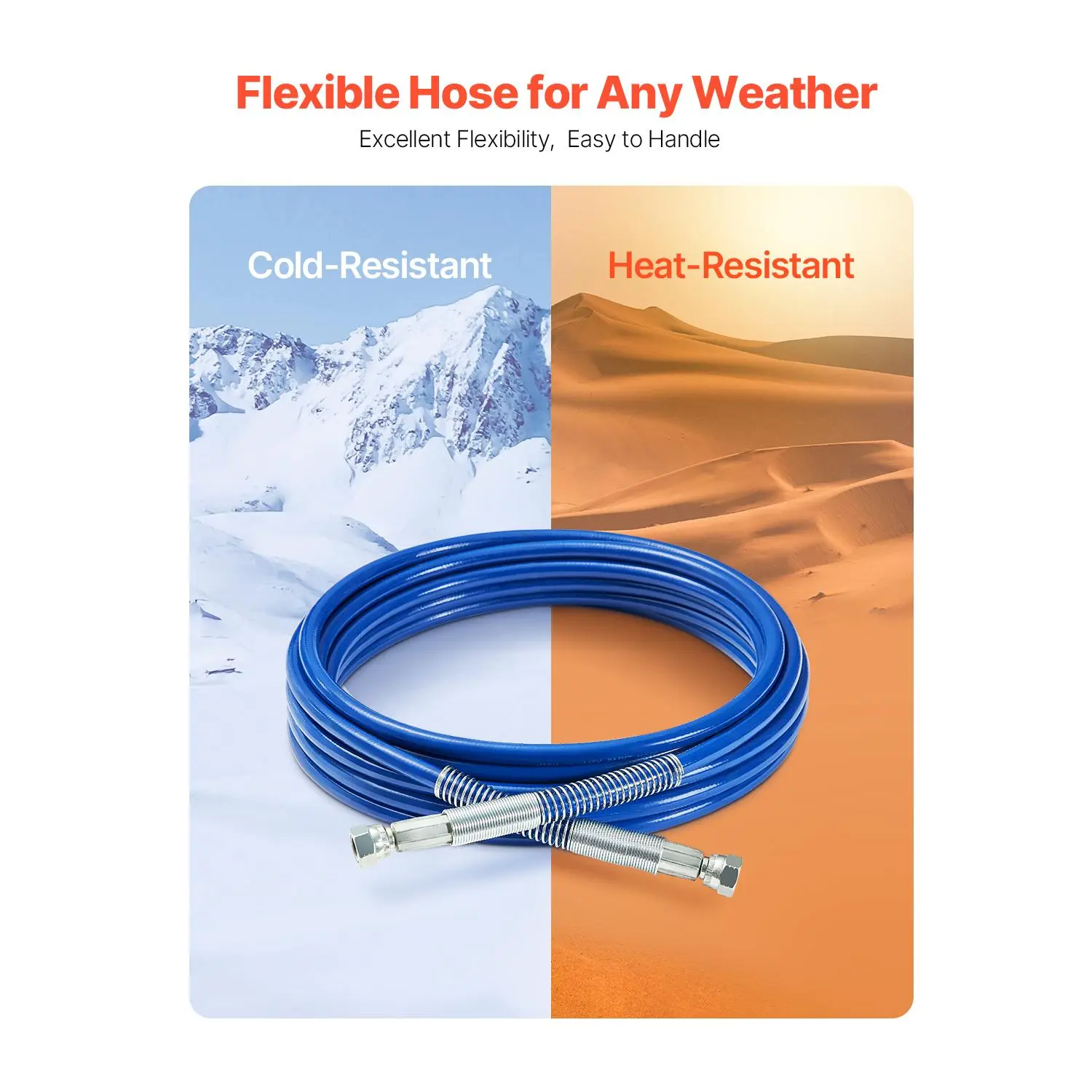 • Easy Connection: The airless paint spray hose is equipped with quick-connect fittings for fast and easy setup, ensuring a secure seal and reliable connection.
