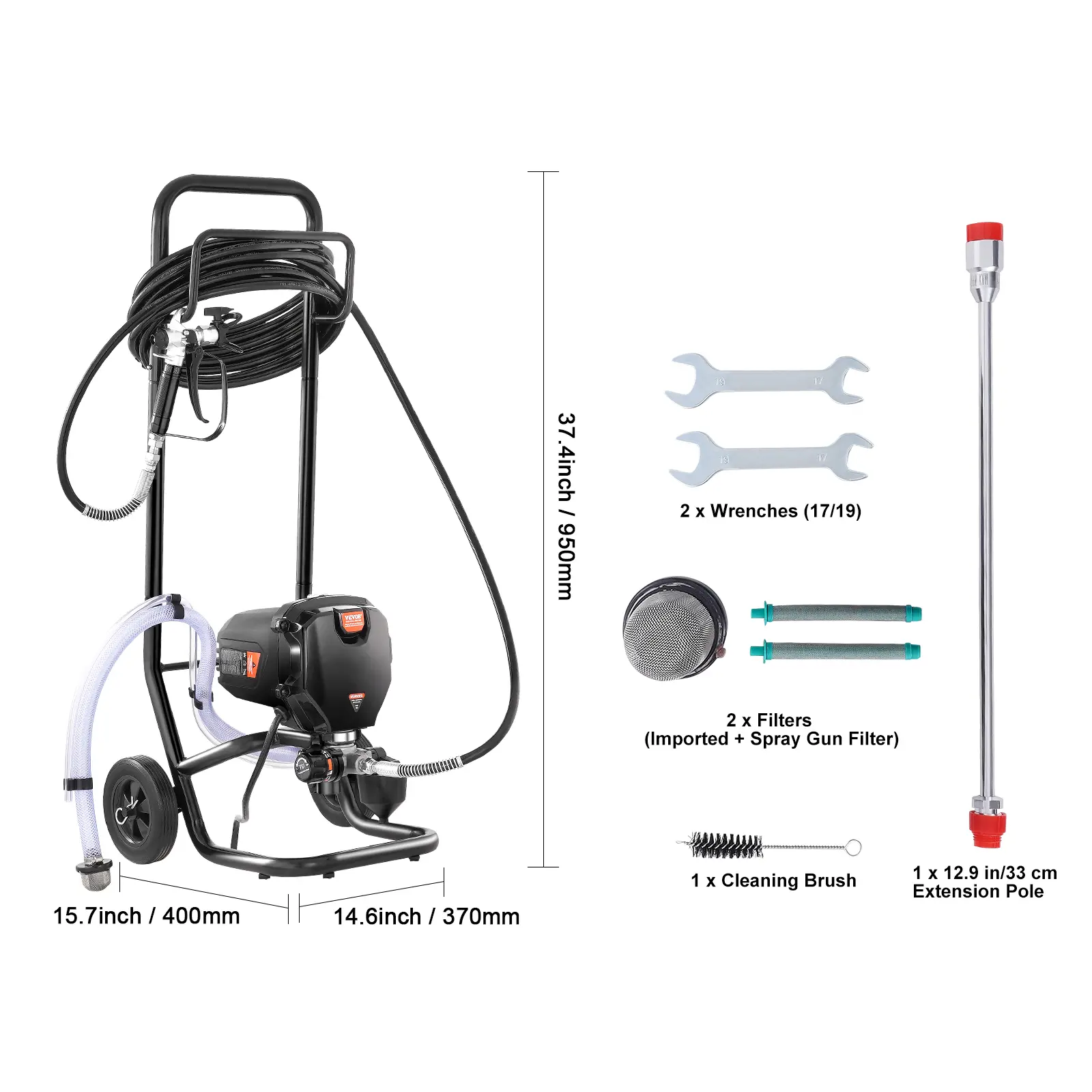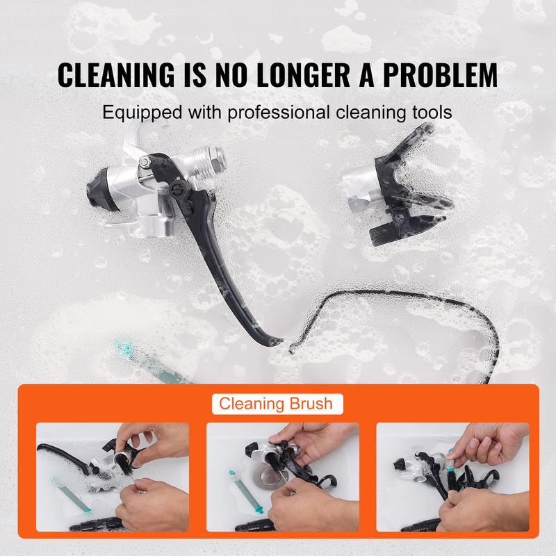 • User-Friendly Design: The wheeled design allows you to easily move the paint airless sprayer to any location. The pump body is detachable for easy cleaning with the included cleaning brush, making it easy to clean crevices and corners. You can also use the extension pole for high or ground-level work, reducing the burden of bending or climbing.