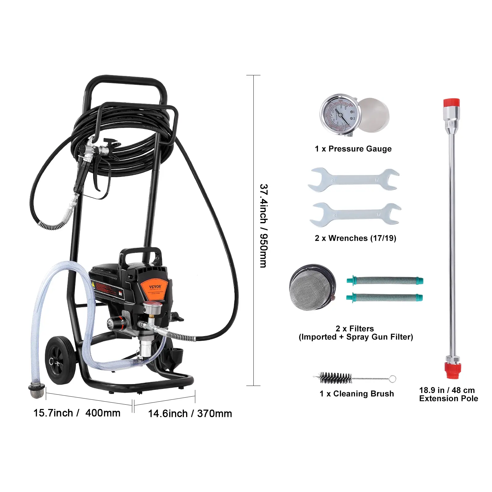 • User-Friendly Design: The wheeled design allows you to easily move the paint airless sprayer to any location. The pump body is detachable for easy cleaning with the included cleaning brush, making it easy to clean crevices and corners. You can also use the extension pole for high or ground-level work, reducing the burden of bending or climbing.