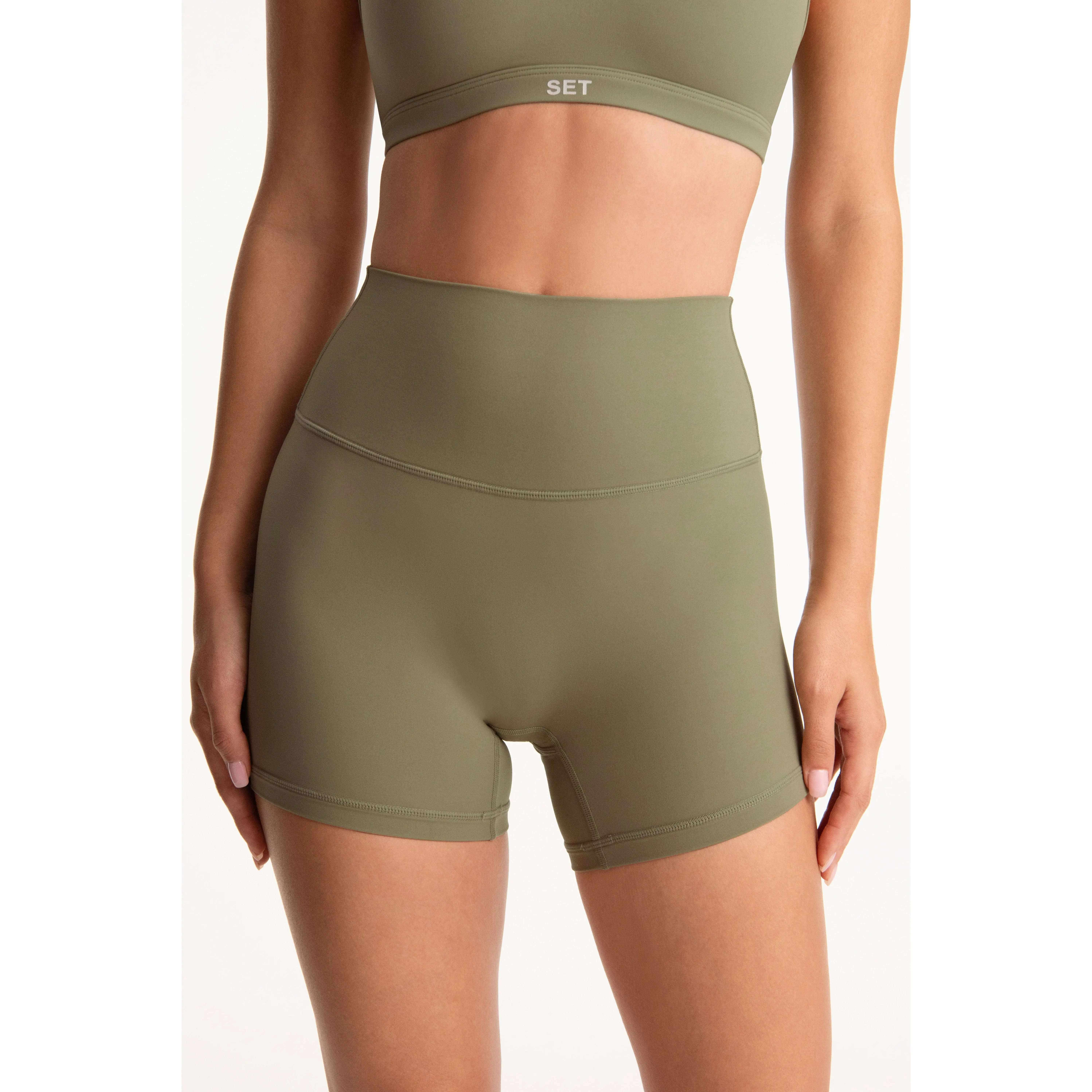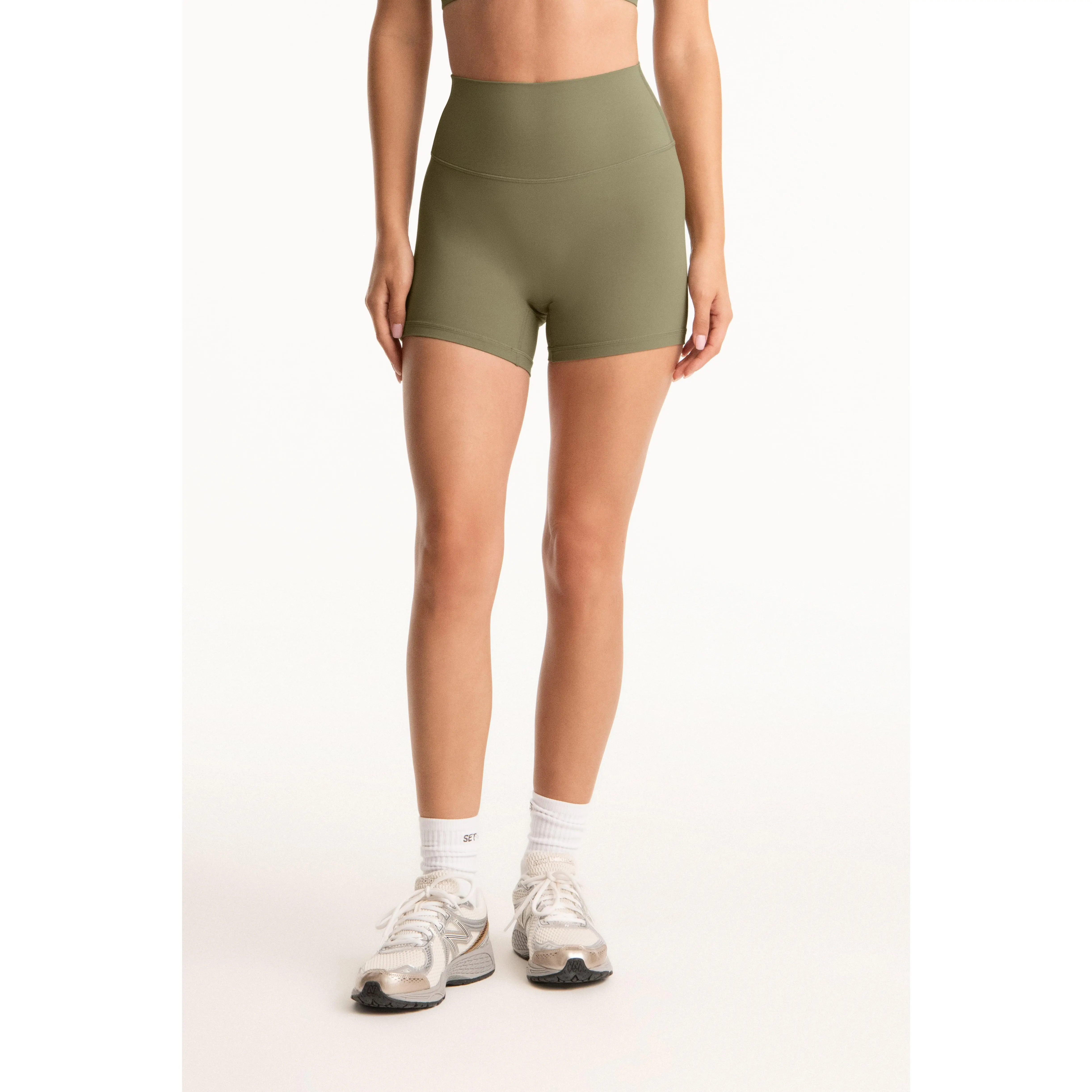 High-rise shorts with seamless construction and logo detail. Lightweight, breathable comfort with medium compression fit.