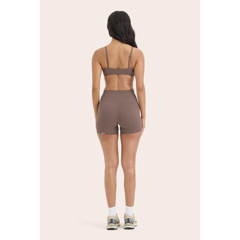 These high-rise shorts in Canoe feature a no-seam design and breathable AIRLUXE™ fabric for weightless comfort and technical performance.