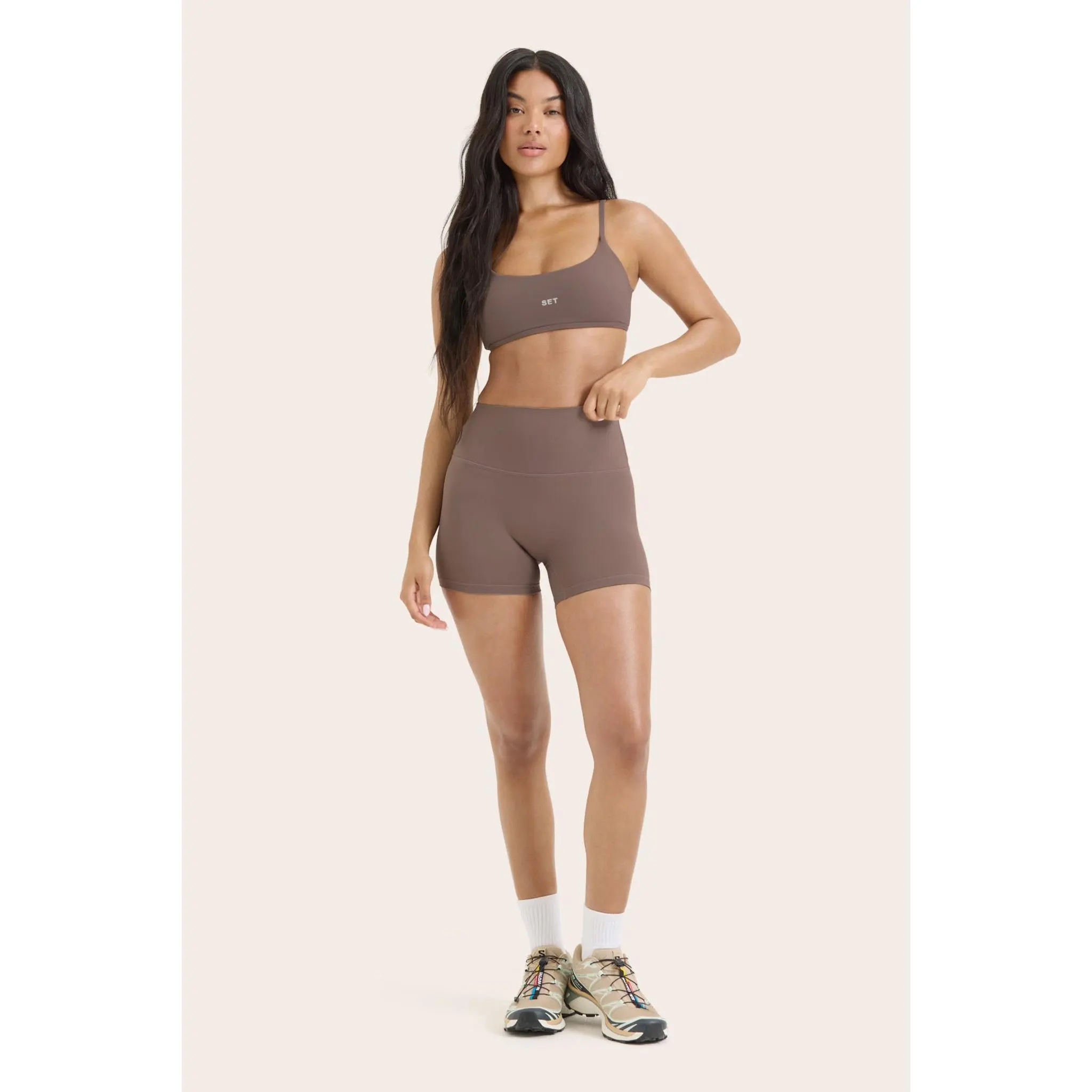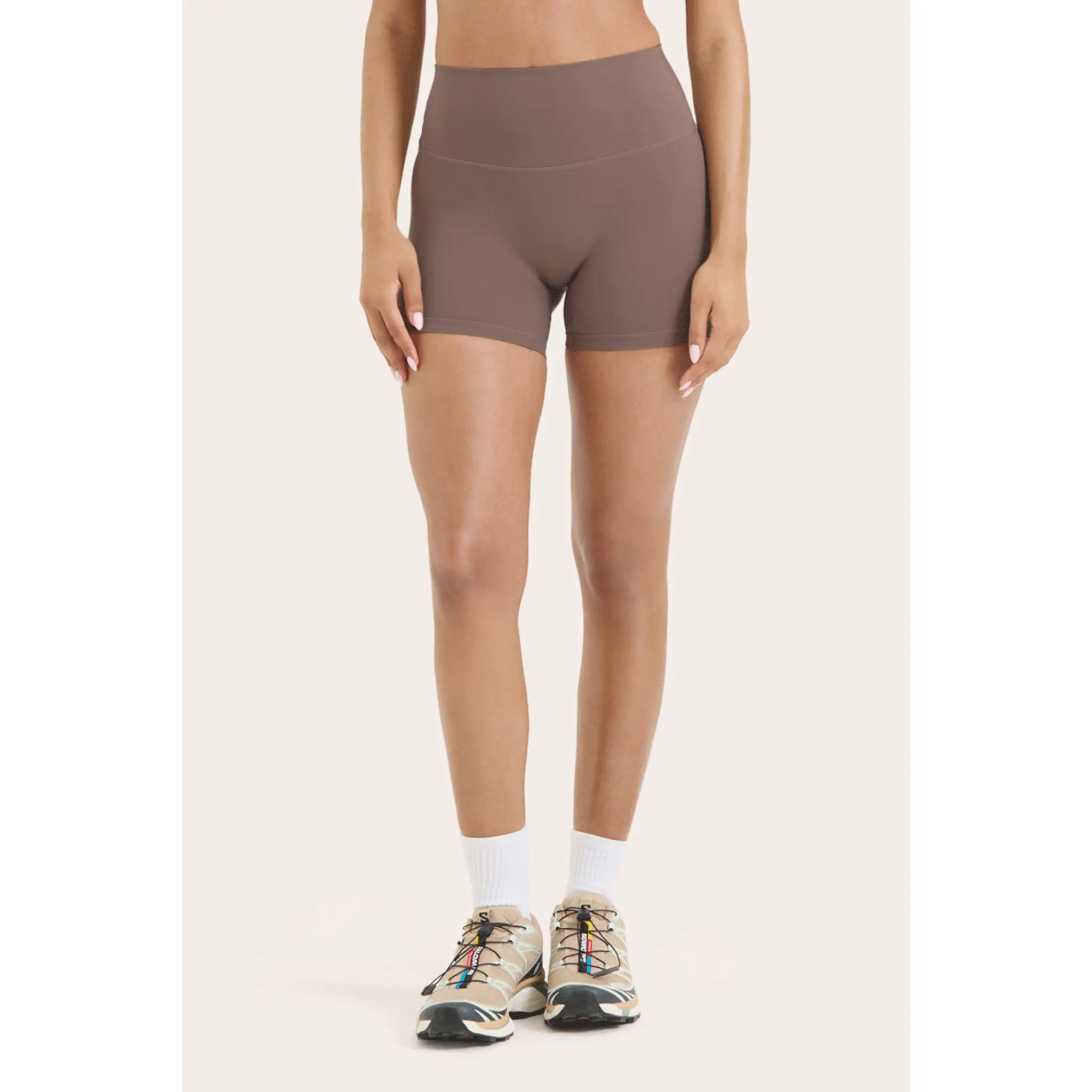 These high-rise shorts in Canoe feature a no-seam design and breathable fabric for weightless comfort and technical performance.