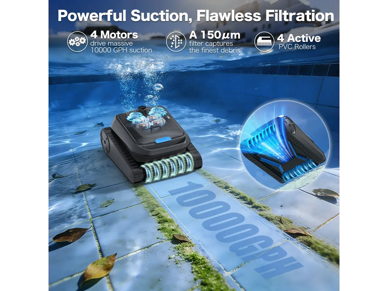 AIRROBO All-In-1 Pool Cleaner + Surface Skimmer (Floor, Walls, Waterline and Surface Cleaning),150min Runtime