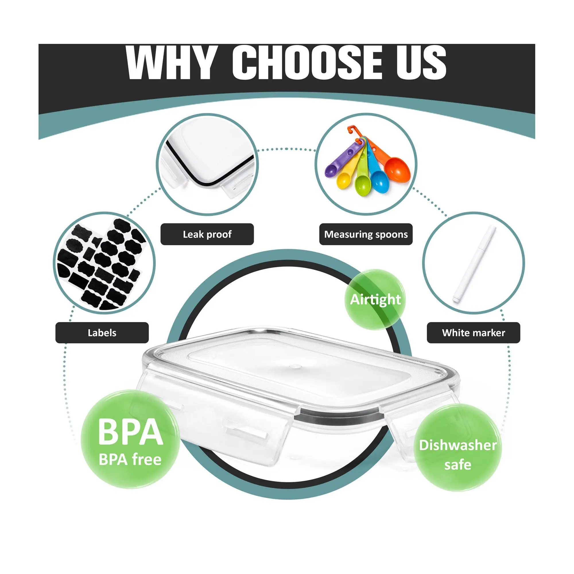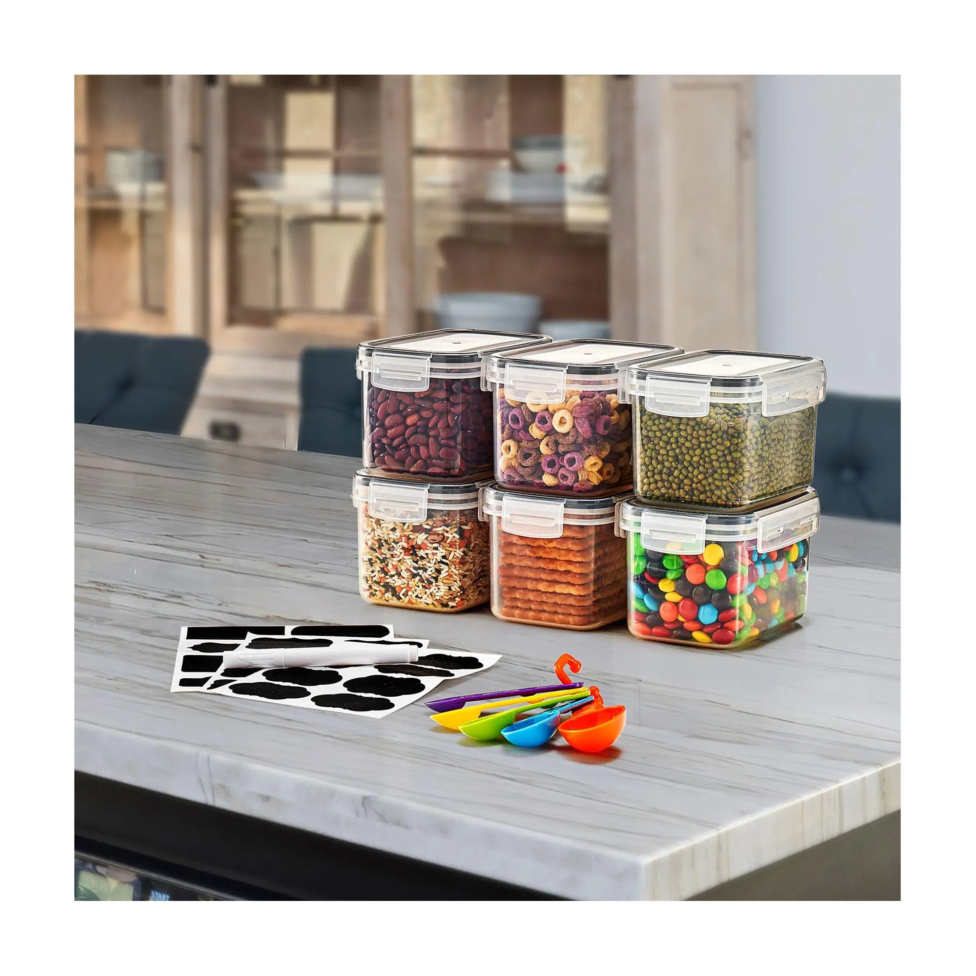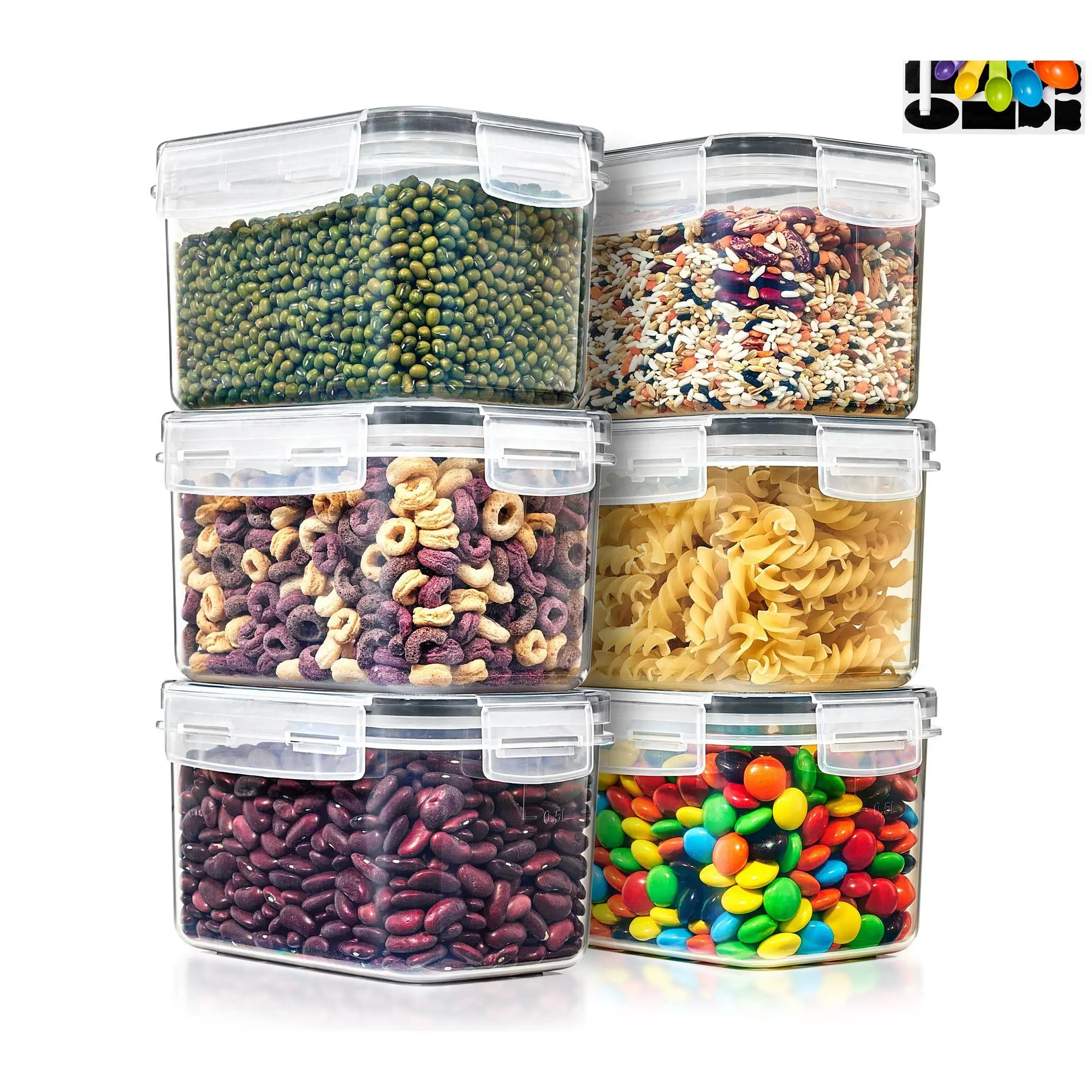 ·Includes six 3.38-cup food storage containers, six lids, measuring spoons, and labels