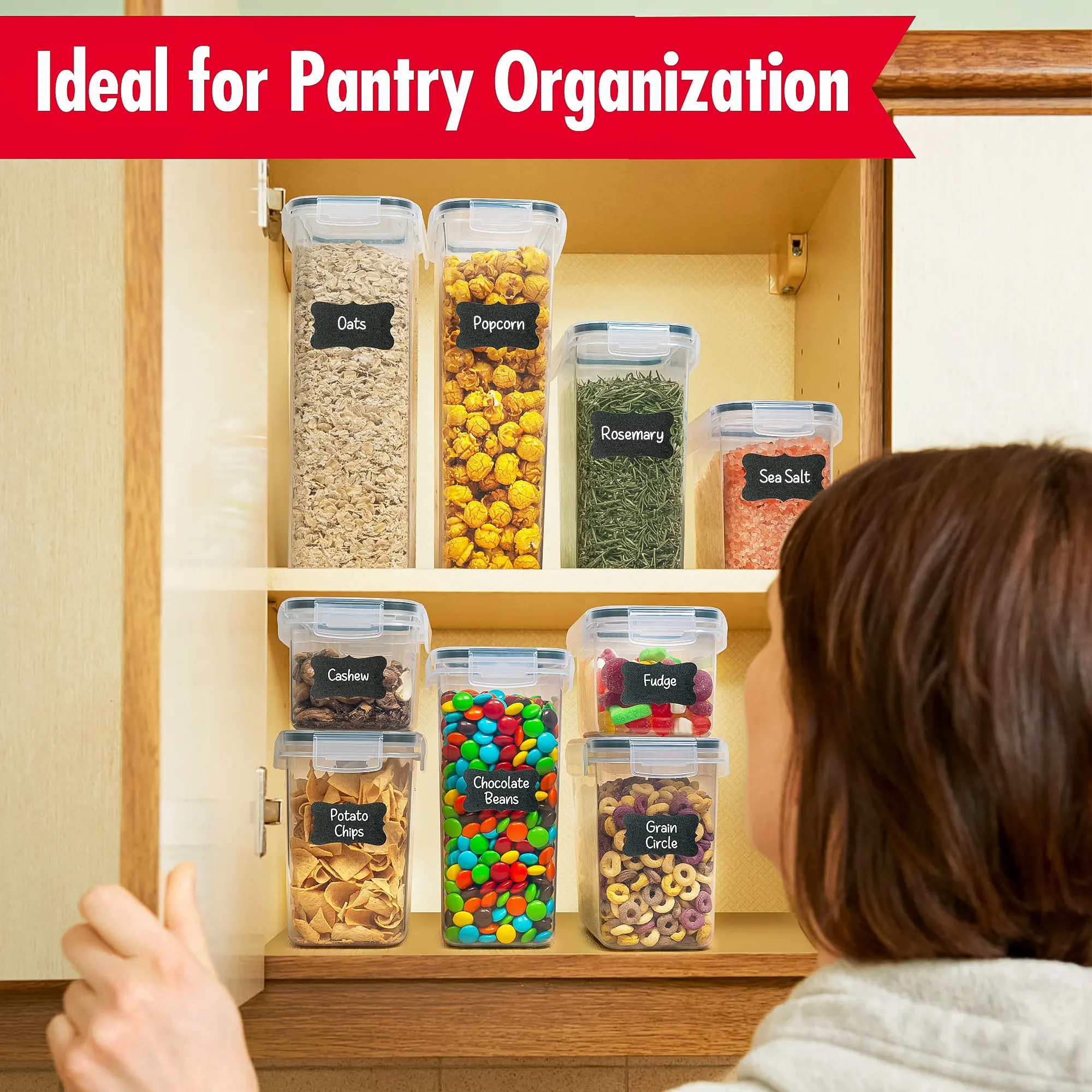 I love these!!! The various sizes made it so easy to organize my whole cabinet—and they come with labels!