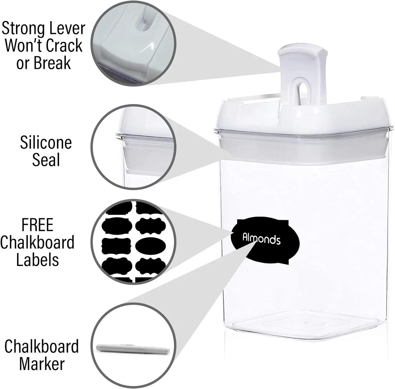 Included with your purchase are labels and a marker, making it easy to identify contents and prevent mix-ups, such as confusing flour with powdered sugar or baking powder with baking soda. Keep track of what’s inside each container with ease!