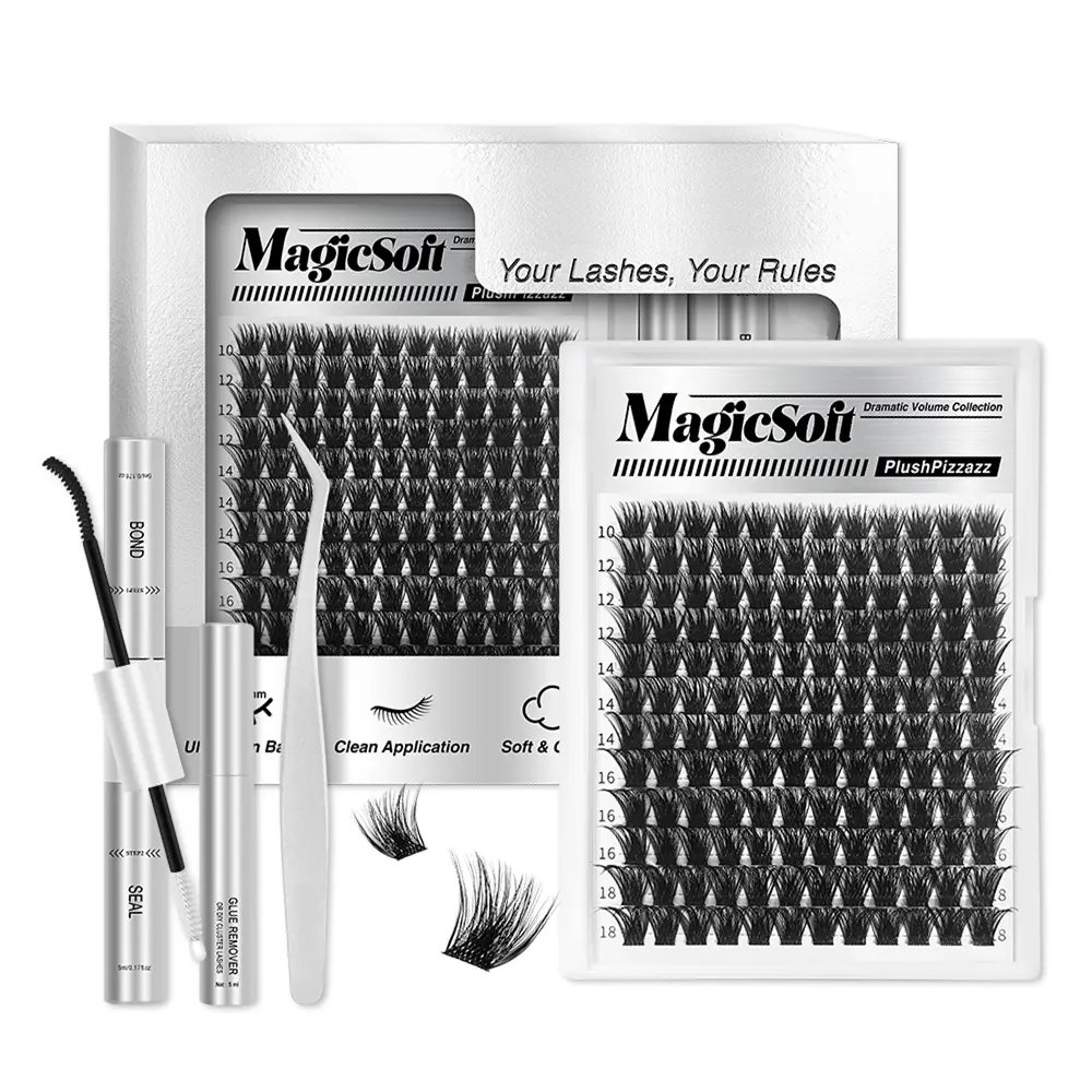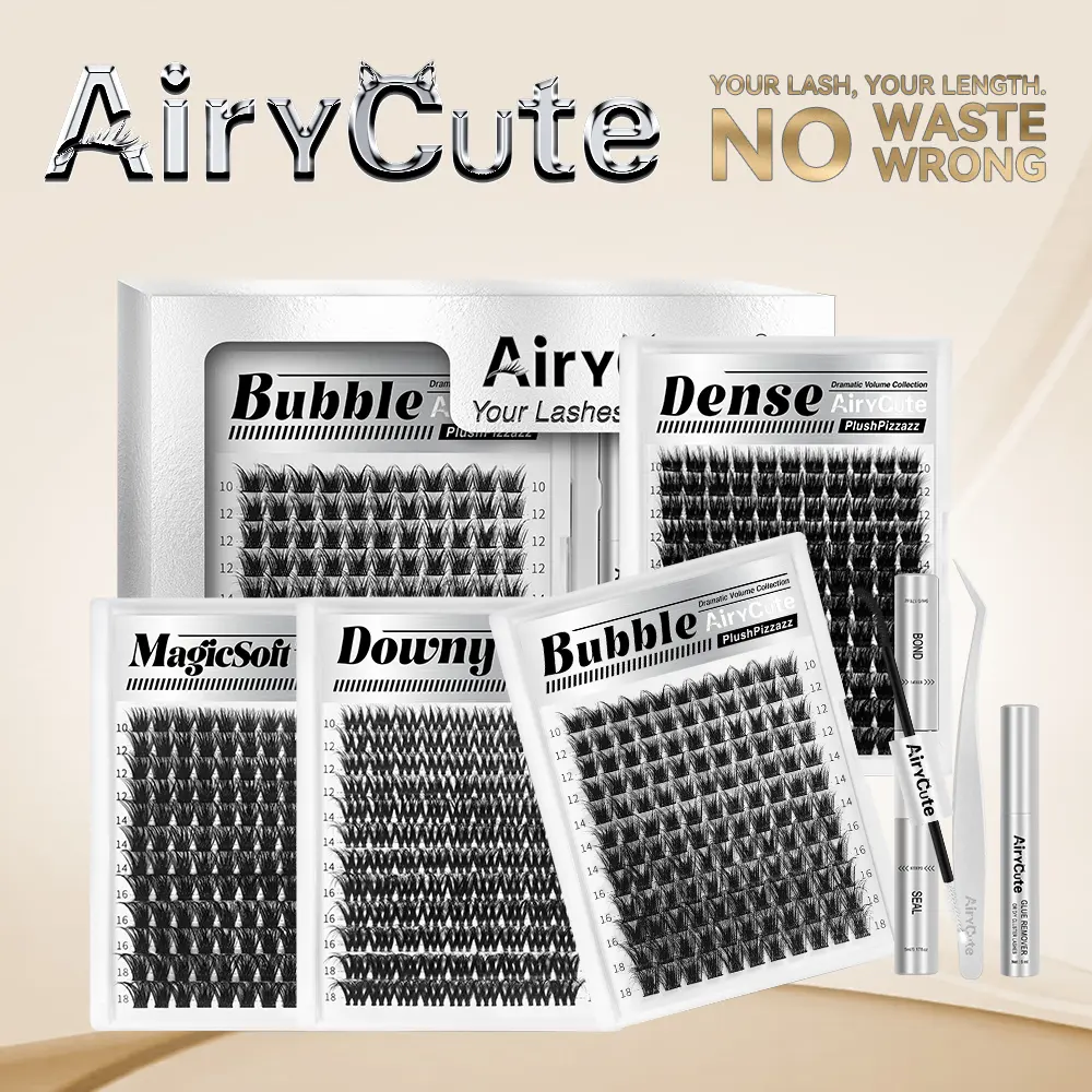 The Airy Cute Voluminous Lash Collection includes MagicSoft, Bubble, Downy, and Flaunt styles. These ultra dense, waterproof, and long-lasting lashes are perfect for beginners. They offer a beginner-friendly DIY option, making it easy to enhance your look. Trendy and must-have clusters, these lashes are your new go-to for stunning results.