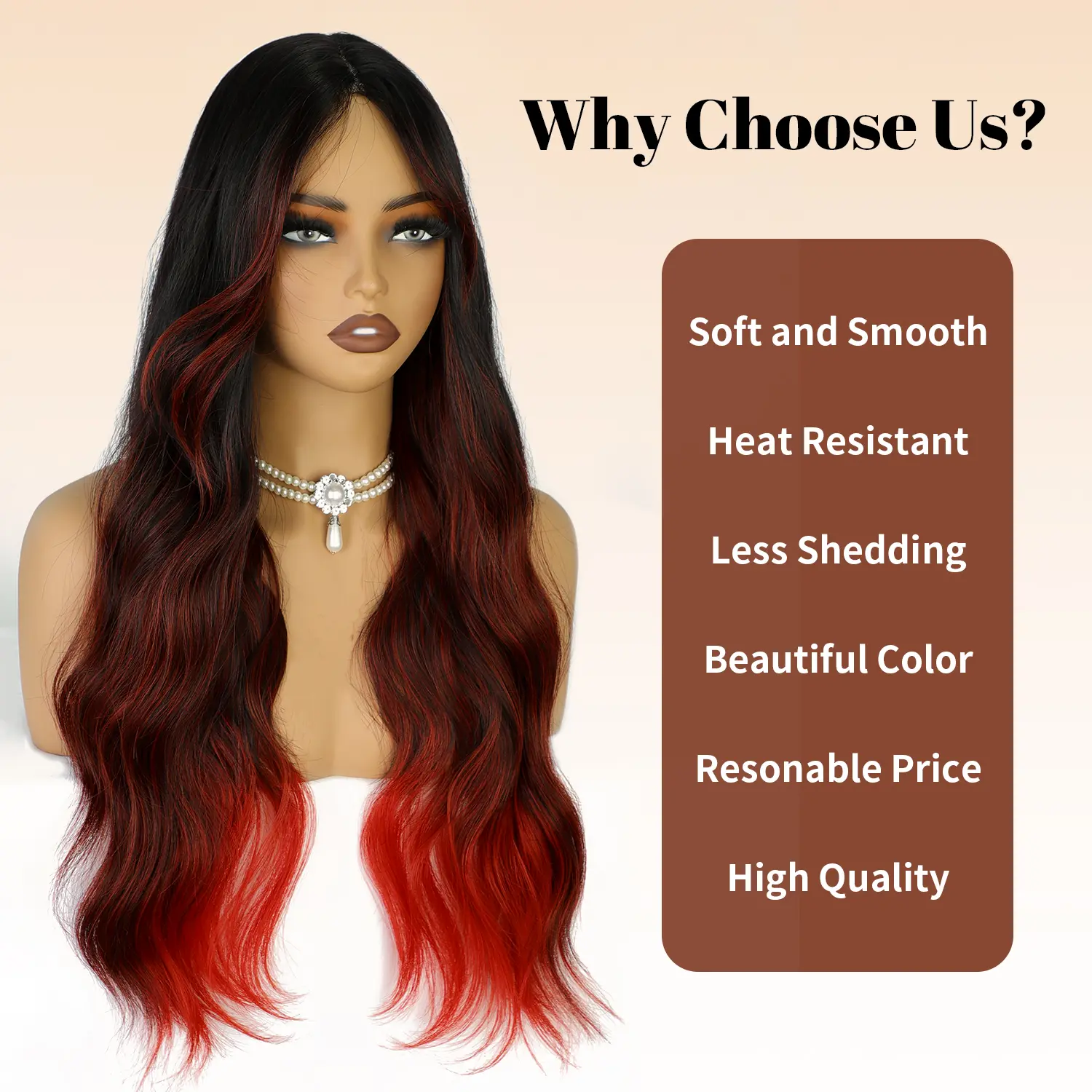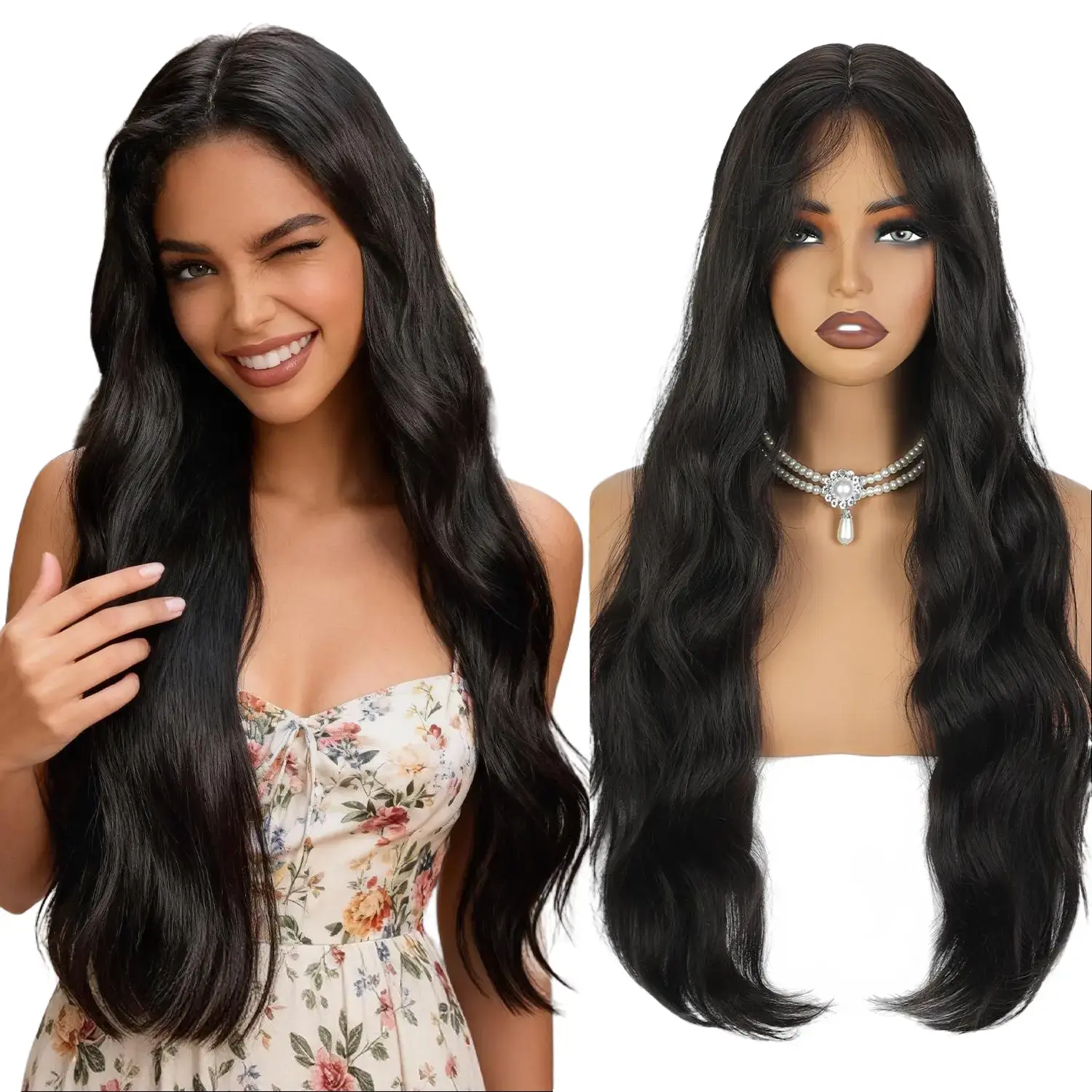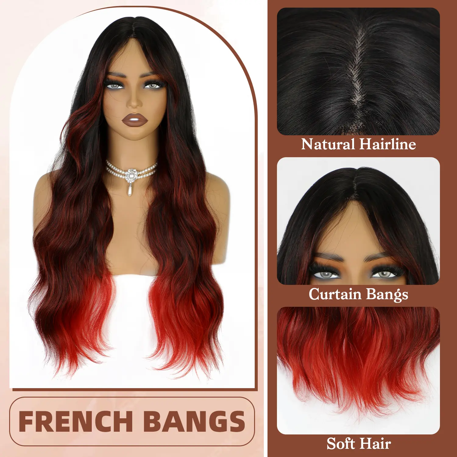 Long Water Wavy Wig: Offers a long, water wavy hairstyle with curtain bangs.
