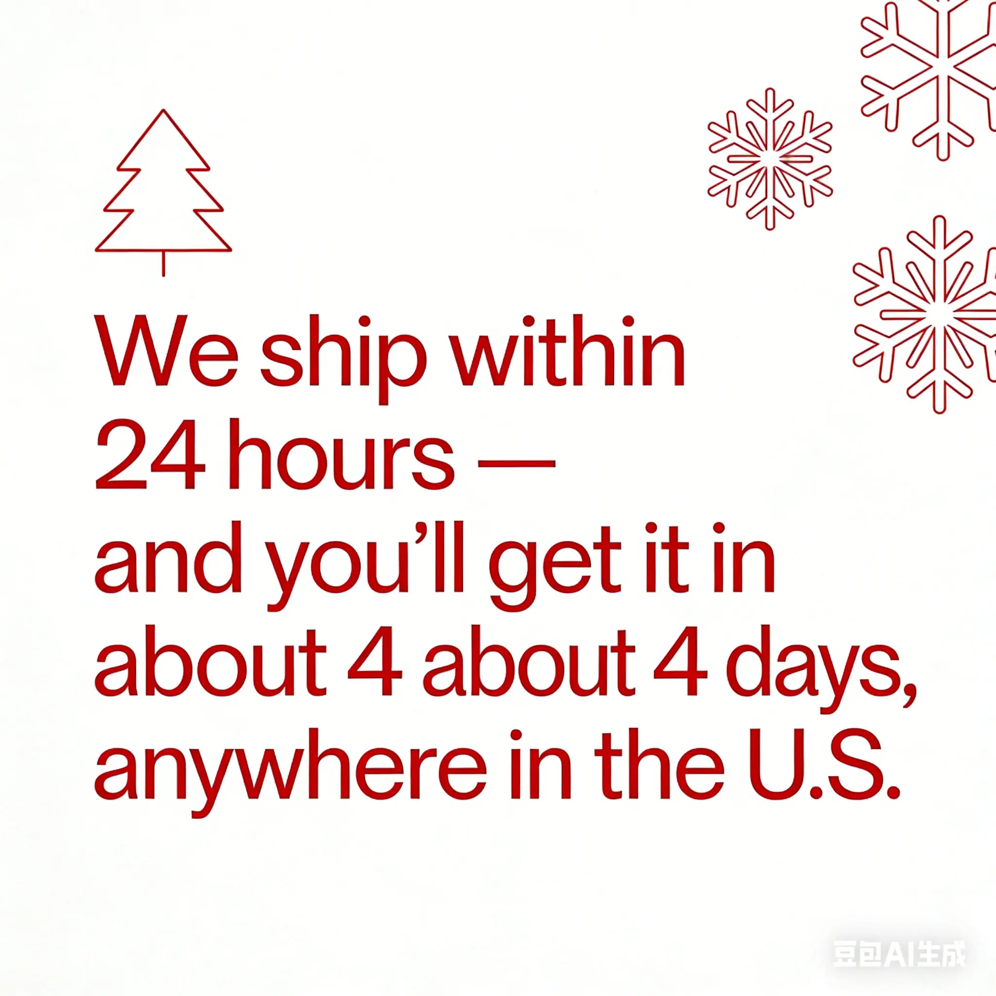 We ship within 24 hours — and you'll get it in about 4 about 4 days, anywhere in the U.S.