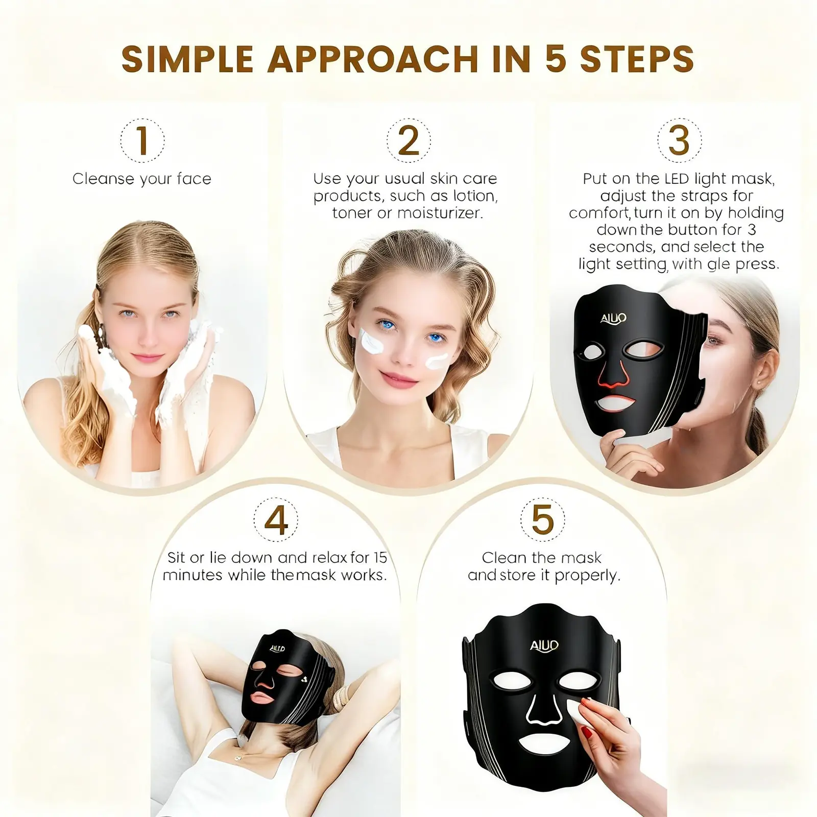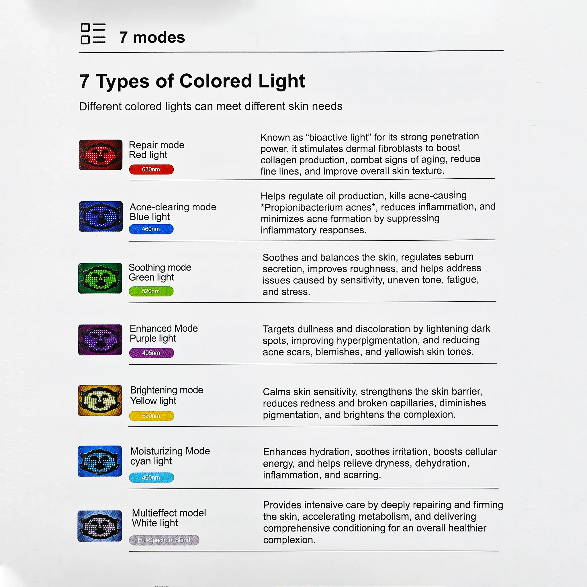·Versatile Modes: The mask uses 7 different colors of LED lights for targeted skincare.