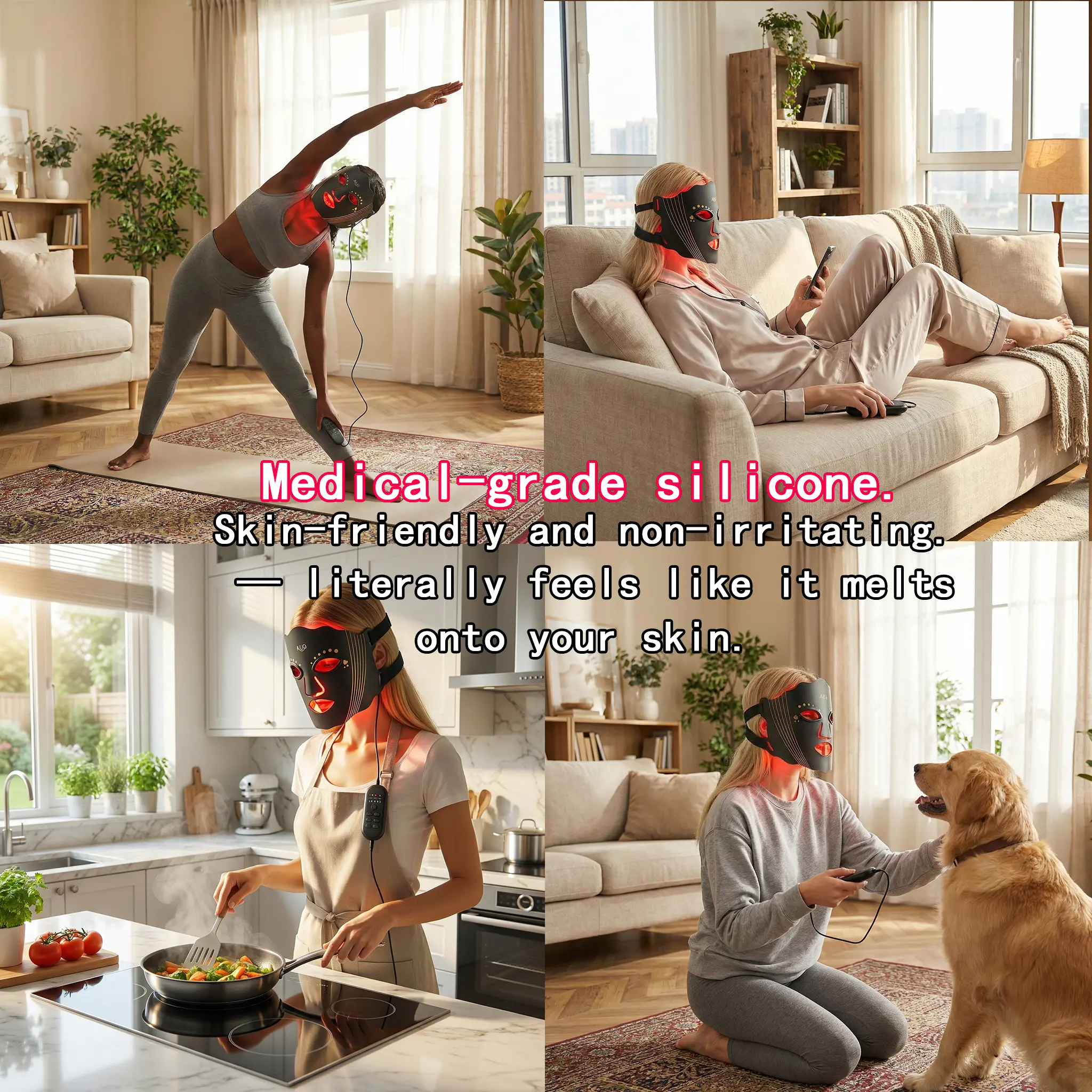 Our product is a FDA certified professional salon device with 7 different phototherapy functions. The entire product is made of medical-grade silicone material, which is soft and non-irritating, and can perfectly fit the contours of your face.