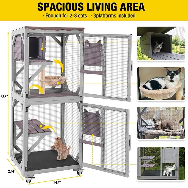 Create a spacious play area for your cats with our expandable catio! Give your cats a secure, customizable space to play, climb, and relax with this versatile catio! Perfect for indoor and outdoor use, this catio offers safety, comfort, and entertainment for your feline friend!