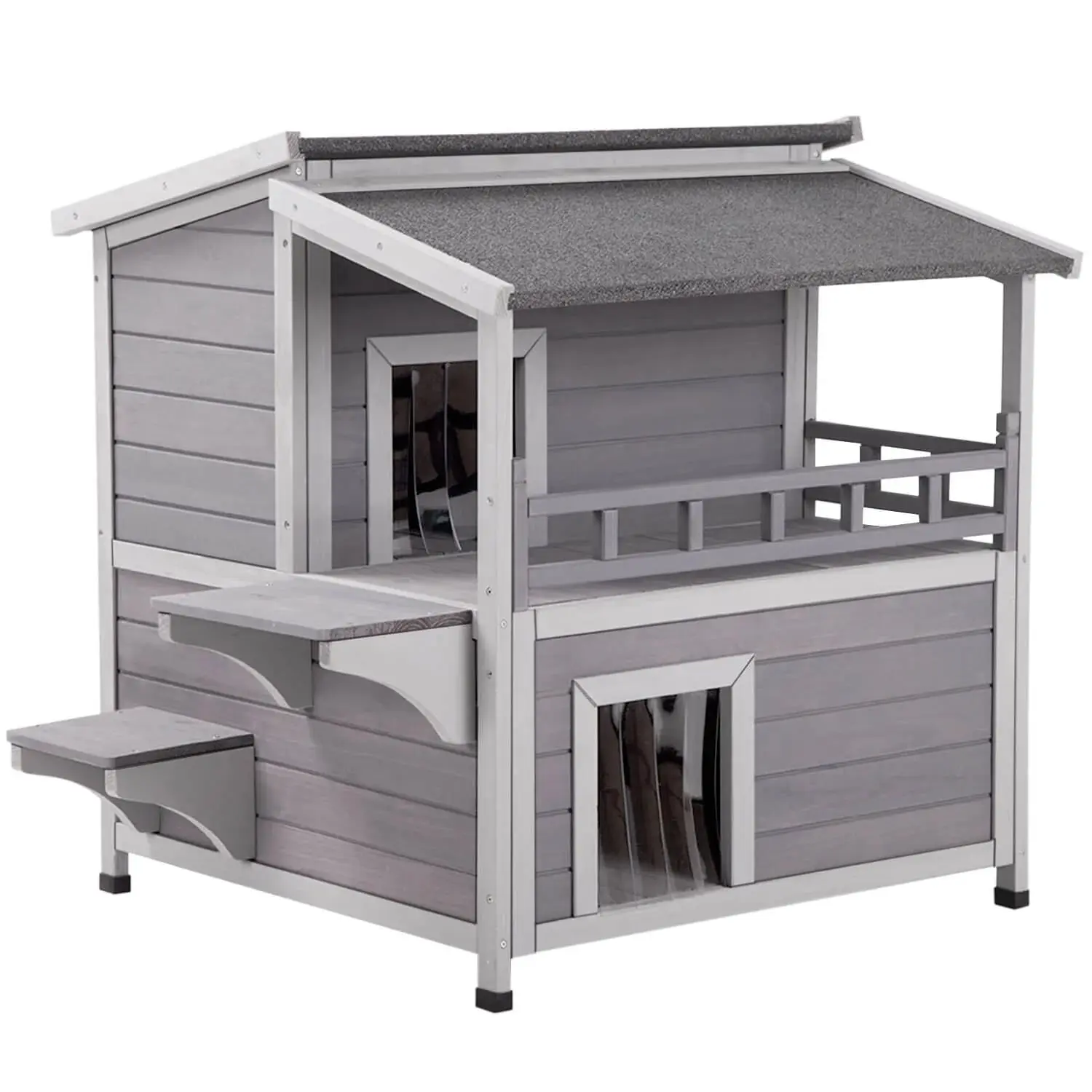 ·2-story cat house provide spacious activity space.A raised bottom with plastic feet to keep the cat Shelter dry from the water or dirt.